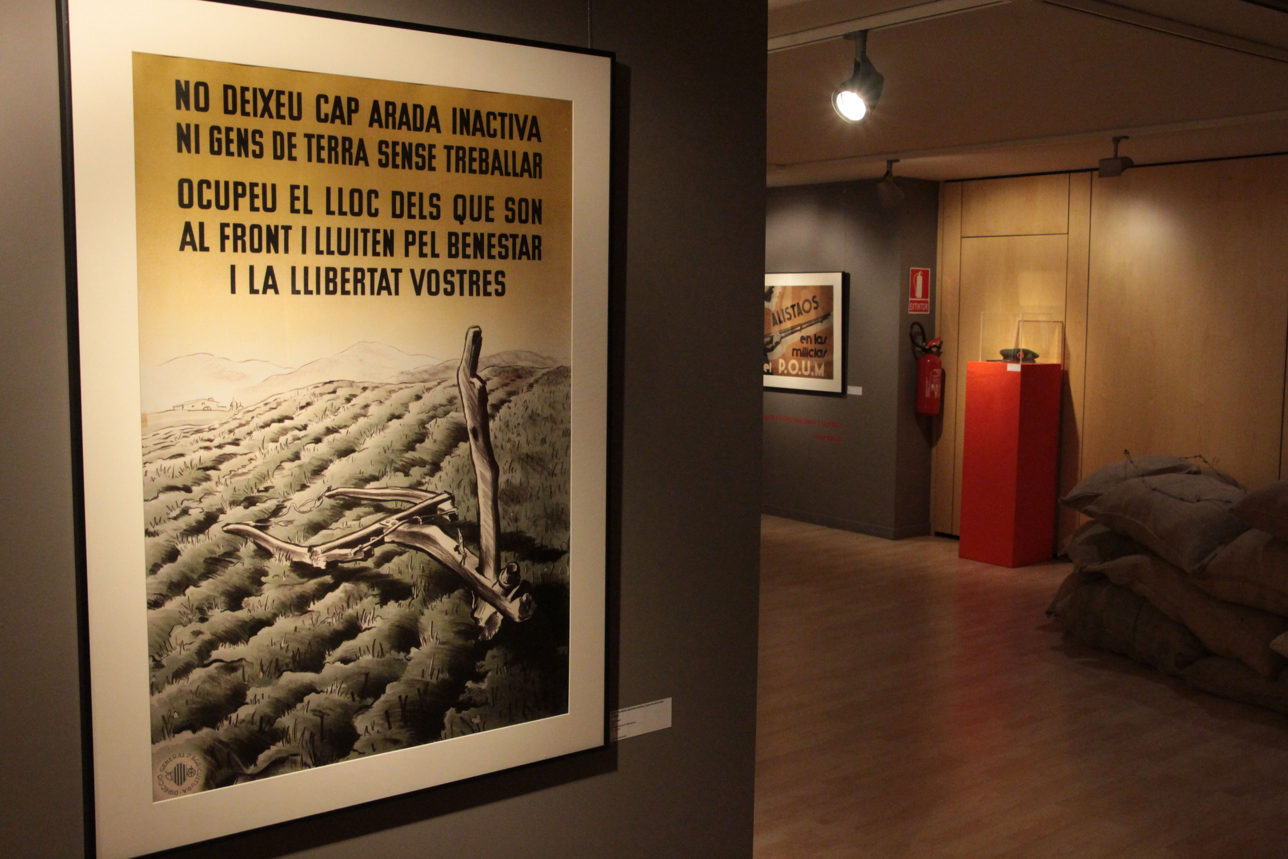 Casabella ha assenyalat que hi ha imatges que mostren símbols del comunisme, del nazisme, així com missatges de diferents ideologies. "És una exposició molt completa", ha indicat. La majoria de les instantànies han estat cedides per l'Arxiu Nacional de Catalunya, però l'exposició s'ha completat gràcies a aportacions de l'arxiu històric de la parròquia i també a la cessió de material per part d'un particular. A més a més, per donar més realisme a la mostra, des del CAEE han reproduït una trinxera des d'on resistien els republicans. El fet que només hi hagi una escena del bàndol nacional, segons Casabella, és perquè "mai van donar importància a tots aquests elements de difusió i trasllat de missatges", a banda que "la qualitat artística dels seus cartells no és tan bona".