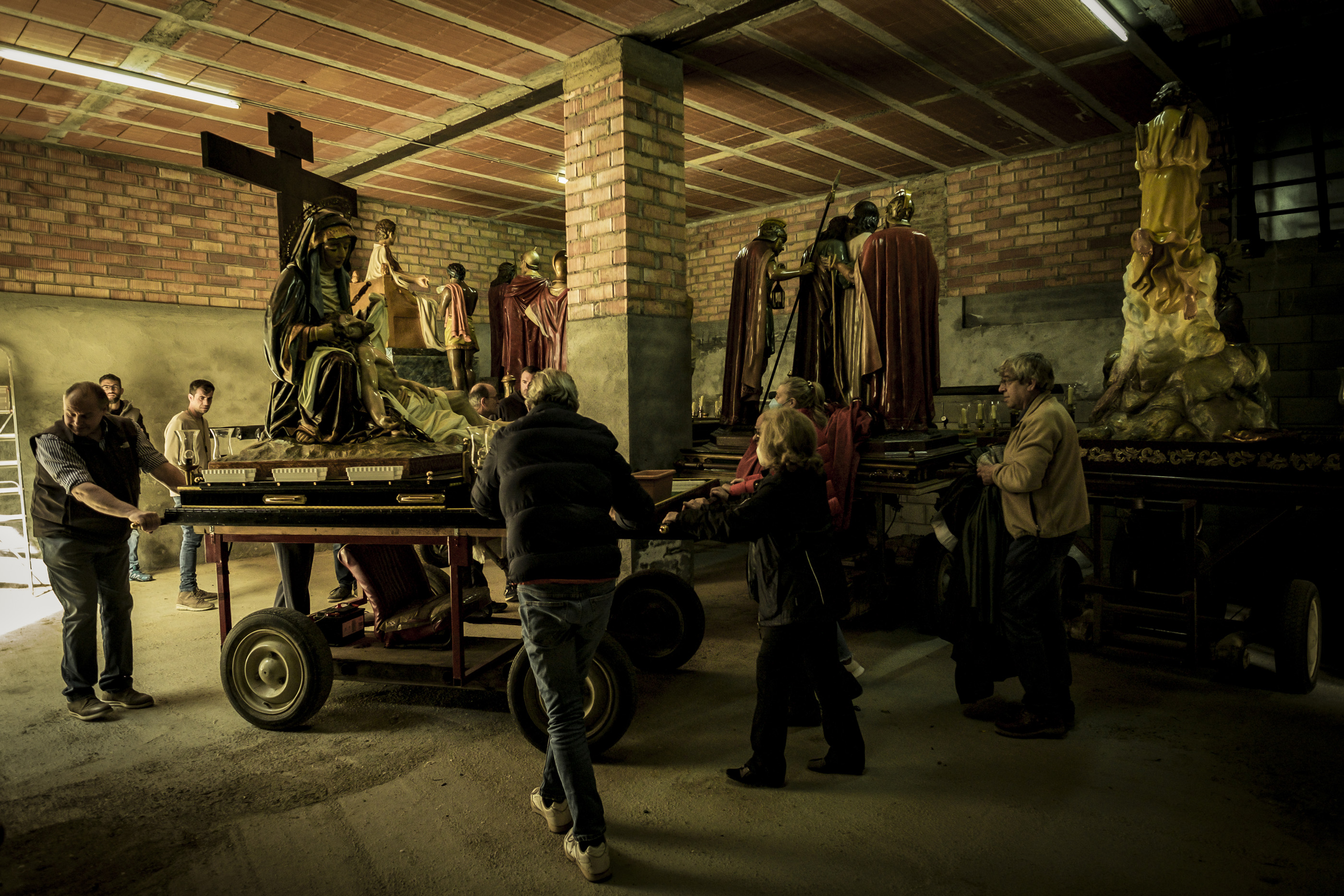 Tot i que, ben segur no queda gaire lluït, aquest tret dialectal, em permet afirmar que la millor elecció per a fer fotos d’una professó és un fotògraf professional. En cap cas en Tony Lara no es mereix un joc de paraules tan escarransit, però no puc sinó afegir-hi l’adjectiu gran a aquest professional nascut a Andorra però que ara viu a la capital de l’Alt Urgell. Si bé la idea de capturar imatges dels preparatius de la processó de Divendres Sant va sorgir per casualitat, dedicar-hi deu anys la converteix en un projecte d’envergadura. Així, tot i que ell afirmava que fer fotos a un acte tan particular comportava treballar només un dia a l’any, el fet de seleccionar-ne cent trenta-quatre per a una exposició, i per al llibre que la complementa, de les quatre mil que va prendre, ja mostra l’ofici i la cura amb què tot plegat s’ha portat a terme. No em puc estar tampoc d’utilitzar l’homonímia que permet transvestir la professó en el professor. I si una cosa cal esperar de qualsevol professor és que ens ensenyi. L’Isidre Domenjó de seguida va mostrar el camí –l'exposició aconsegueix dessacralitzar un acte solemne– m’apuntava. I sí, aquestes fotos prèvies ens permeten compartir uns moments de gran humanitat que res tenen a veure amb el protocol que desfilarà amb severitat, unes hores més tard, en un dels actes més multitudinaris dels que es porten a terme a la Seu, en dura competència amb el correfoc de la festa Major, com és la processó de Divendres Sant.