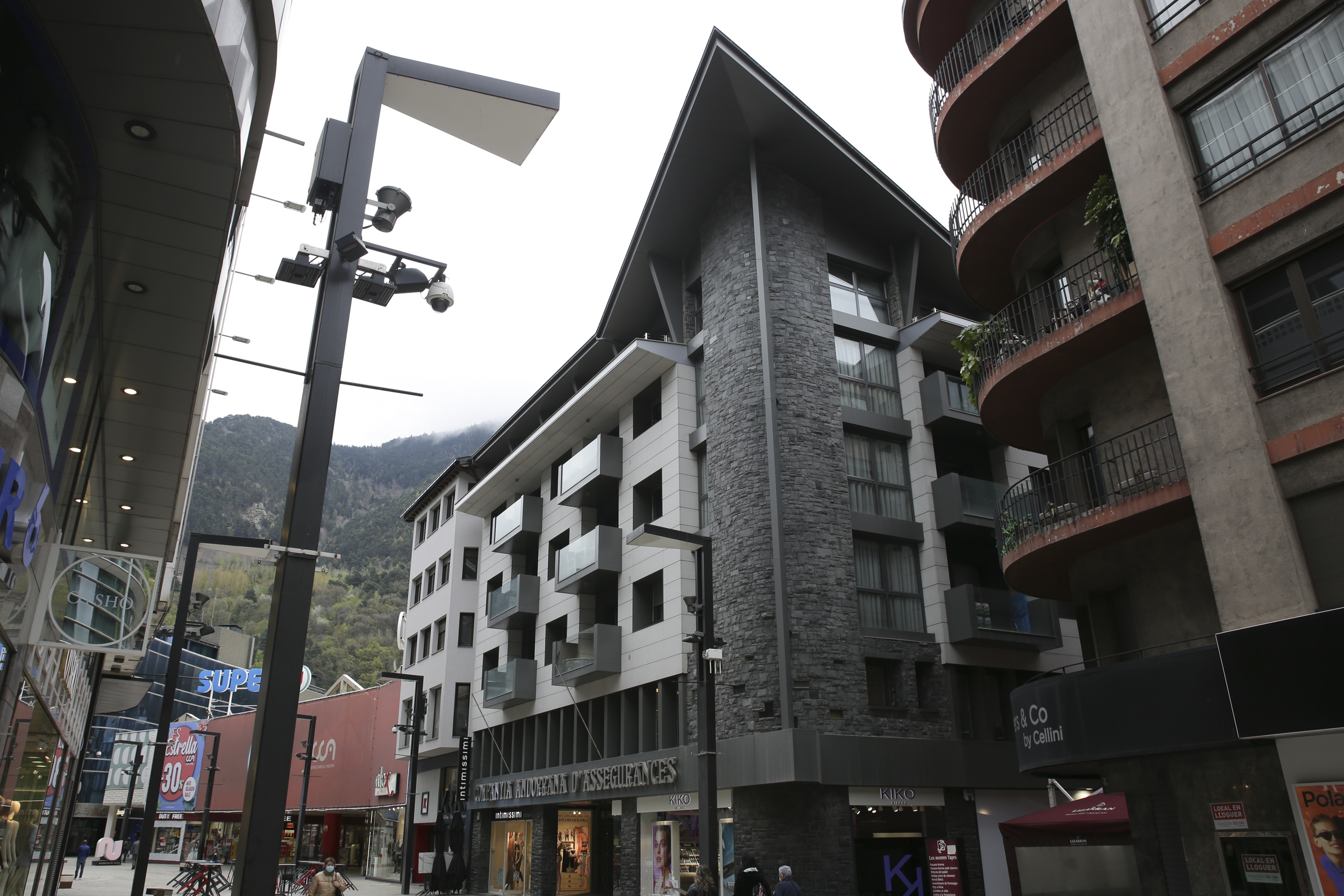 Ens hi juguem un peix que, com li havia passat a Dilmé, el lector s’ha sorprès en alguna ocasió aixecant el cap i admirant la singular estructura de l’edifici de la Companyia Andorrana d’Assegurances, amb la seva cantonada de granit arrodonida i la monumental fletxa que aixeca el llosat i el projecta cap endavant amb una imatge que recorda la proa d’un buc, per dir-ho amb les exactes paraules de l’arquitecte, a qui li resulta “simplement brillant” la superposició d’usos, oficines, habitatges i àtic, en tres franges perfectament visibles –diu, i és fàcil comprovar-ho– a la façana.