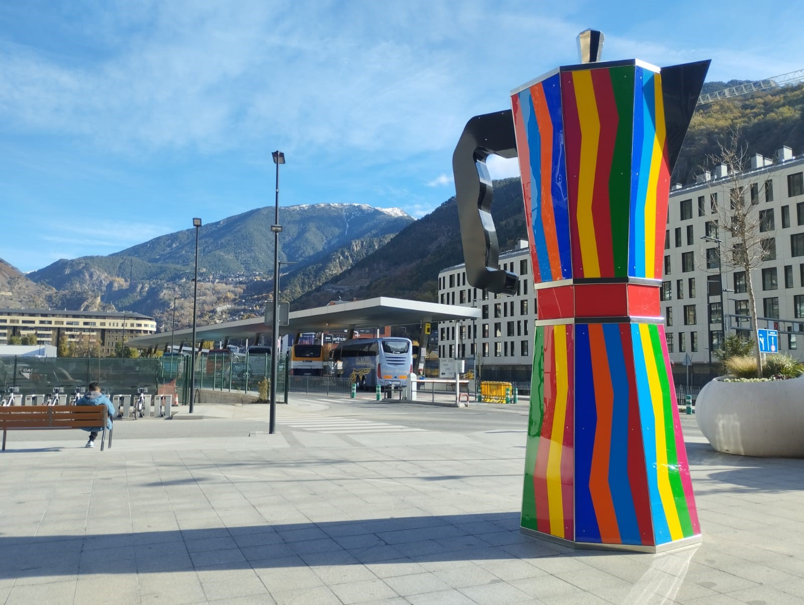 A Sant Julià es va estar els dos mesos de la biennal a la plaça del Solà, molt visible si hi passaves en cotxe però d’accés més dubtós i que no permetia captar-la en la totalitat: a la cafetera gegant –una estructura d’acer i planxes de metacrilat que fa 5 metres d’altura– l’acompanyava una mà de resina que sostenia naturalment una càpsula de cafè –What else?, recorden– i un codi QR amb l’explicació de l’obra. Quants dels que ens vam fixar en la cafetera vam arribar a veure l’obra sencera, mà i càpsula incloses? Aquests elements encara no hi són però arribaran aviat al nou emplaçament de Time is Runnig Out. I com que s’ho estaran demanant, sàpiguen que l’obra ha costat 12.000 euros. Això, en total, perquè de fet va ser un encàrrec de Reunió de Papaia per a aquesta edició de la biennal pel qual es van abonar 8.000 euros. A l’hora de recollir-la per endur-se-la cap a Valladolid, Galán va plantejar l’opció que es quedés a Andorra amb un plus de 4.000 euros, una ganga, segons el comissari de la Biennal, Pere Moles, que va ser possible assumir gràcies al mecenatge de Casa Xirro i d’Andorra Turisme.