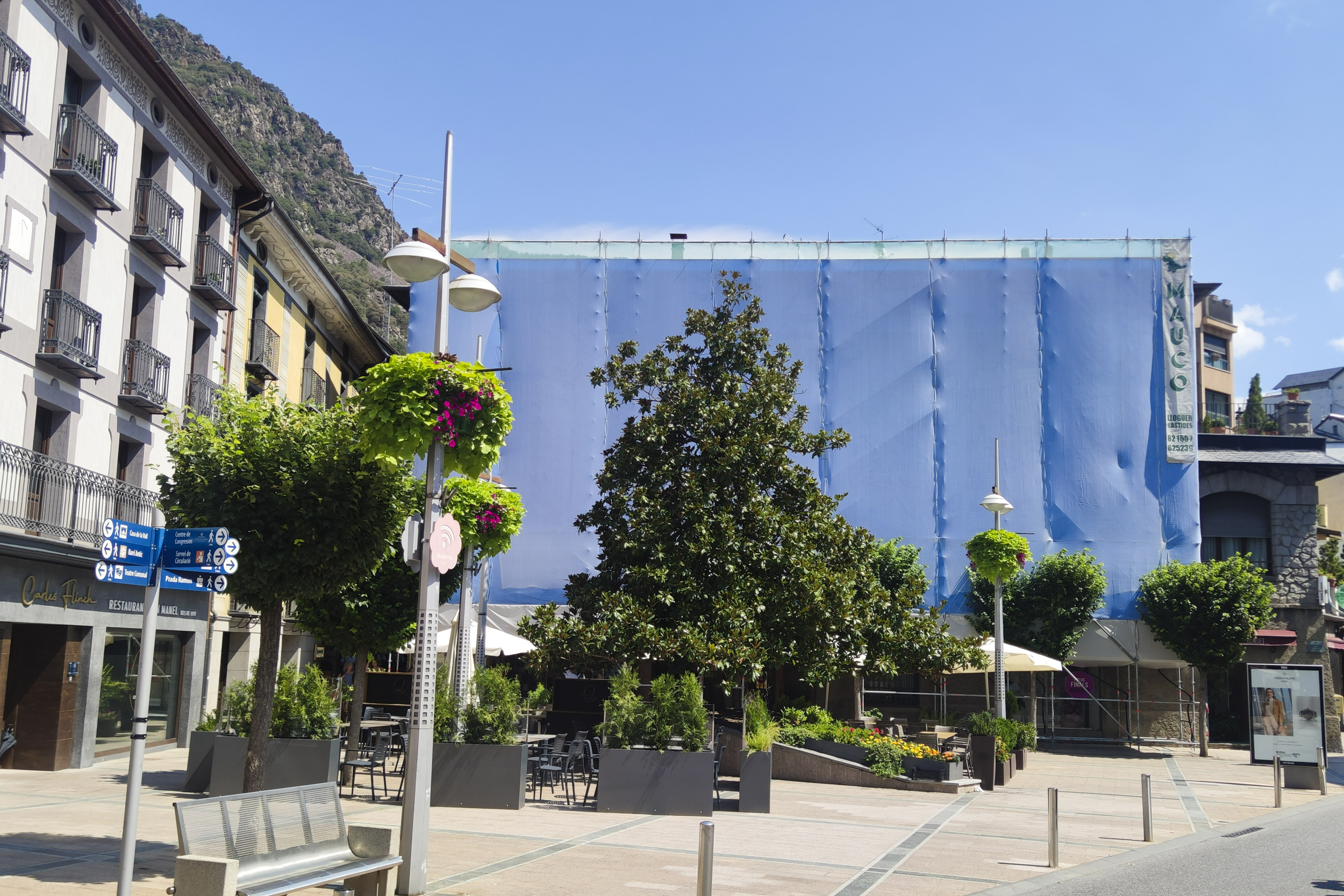 S’hi han d’haver fixat perquè una lona cobreix des de fa setmanes la façana principal de casa Guillemó i embruta la perspectiva de la plaça Benlloch, a banda d’empetitir-la. Doncs sota la lona, tancada amb pany i forrellat de manera que és impossible veure què s’hi cou, hi ha les bastides on des de la setmana passada s’enfila l’equip de restauradors que li tornaran el somriure al casalot. Es tracta, indiquen des de Patrimoni, que assessora la propietat en aquesta iniciativa, de reintegrar-ne les pèrdues i de restaurar-ne la decoració conservant-ne el que queda, i de fer-ho amb els mateixos pigments originals “per retornar la imatge i la llum a la façana que dona a Príncep Benlloch”. La campanya va arrencar amb la protecció dels esgrafiats, fase prèvia al sanejament de la façana, la restitució del suport i la recuperació de la decoració. I s’allargarà si no sorgeixen imprevistos quatre mesos. Abans de l’hivern, en tot cas, perquè el fred impedeix treballar en condicions el morter de calç que constitueix el suport dels esgrafiats.
