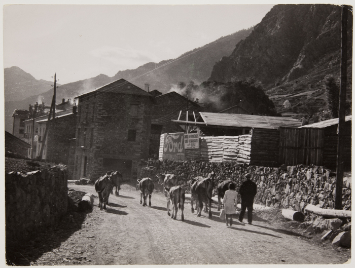 Recordaran que es tractava de dues imatges conservades a l’international Center of Photograhy (ICP) de Nova York. Totes dues datades l’hivern del 1939: una, a la duana francesa del Pas de la Casa, i l’altra, una vista urbana que vam localitzar inicialment i amb l’ajut del conservador dels fons fotogràfic de l’Arxiu Nacional, Isidre Escorihuela, a l’avinguda Meritxell, aproximadament on avui s’aixeca la mola de Pyrénées. Doncs resulta que no. L’historiador Quim Valera se la va mirar amb lupa, pel davant i pel darrere –al revers hi ha una telegràfica nota manuscrita “Chim, Spanish French - Andorra 1939”– i va arribar a la molt versemblant conclusió que la vista correspon efectivament a un carrer de la capital, sí, però una mica més enllà d’on proposava Escorihuela: a la cruïlla entre Príncep Benlloch i Ciutat de Valls. Chim devia disparar aproximadament des de davant de Clara Rabassa, i al centre de la imatge, rere la corrua de vaques, es distingeix perfectament l’estructura de cal Marquilló del Puial, que encara existeix, tunejada. A la dreta de cal Marquilló hi distingeix Valera el roc de l’Aldià, avui tallat pel carrer Ciutat de Valls i del qual se’n conserva encara algun fragment: “No en tinc cap dubte, és aquí”, sosté.