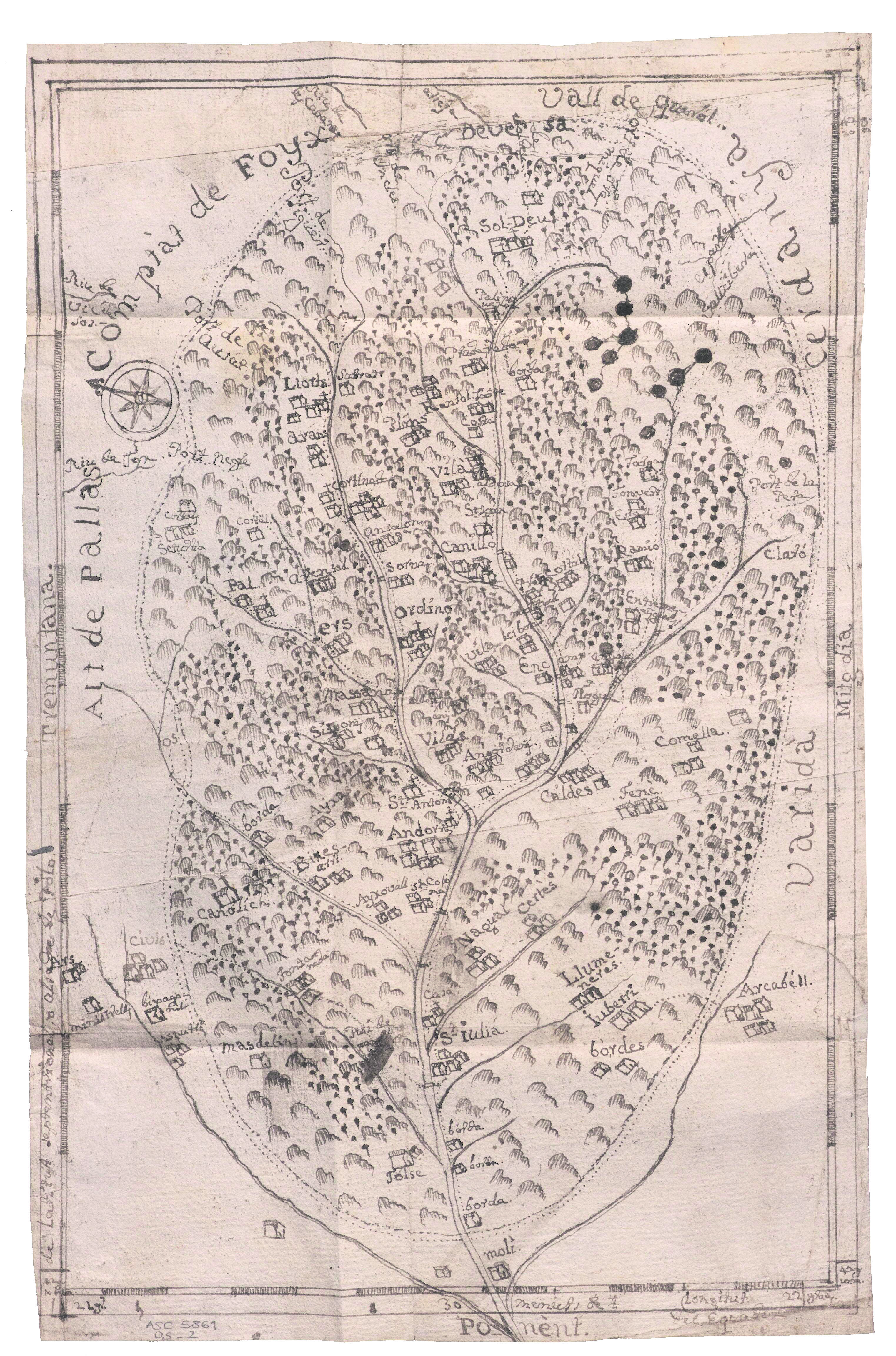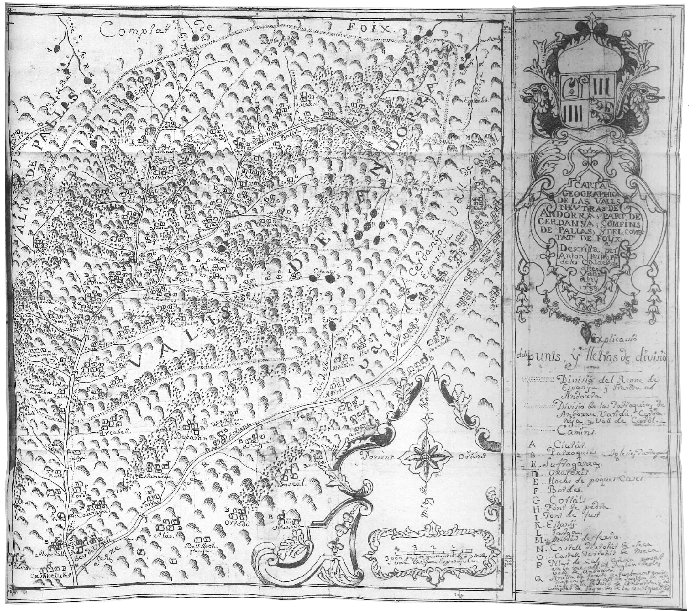 Mirin-se’l bé, perquè no havien vist mai una cosa igual. És el mapa d’Andorra traçat per mossèn Antoni Puig a instàncies de Francisco de Zamora, la mena de comissionat o, per dir-ho clarament, espia, que ens va enviar l’amable rei Carles III d’Espanya. En realitat es tracta d’un esbós que el bon mossèn Antoni va incloure en un volum manuscrit que va titular Manual Digest de les Valls de Andorra –així, sense apostrofar–, datat al 1797 i que per complicar una mica més la troca en realitat no és una còpia del Manual Digest, com equívocament indica al títol, sinó una tercera versió del Politar Andorrà que ell mateix havia escrit el 1764. La curiosíssima, fascinant història del manuscrit l’expliquem a la pàgina 22, a partir de la radiografia que n’ha fet l’historiador Francesc Rodríguez, que en presentarà les conclusions –i el volum que les recull– dijous que ve al Consell General.