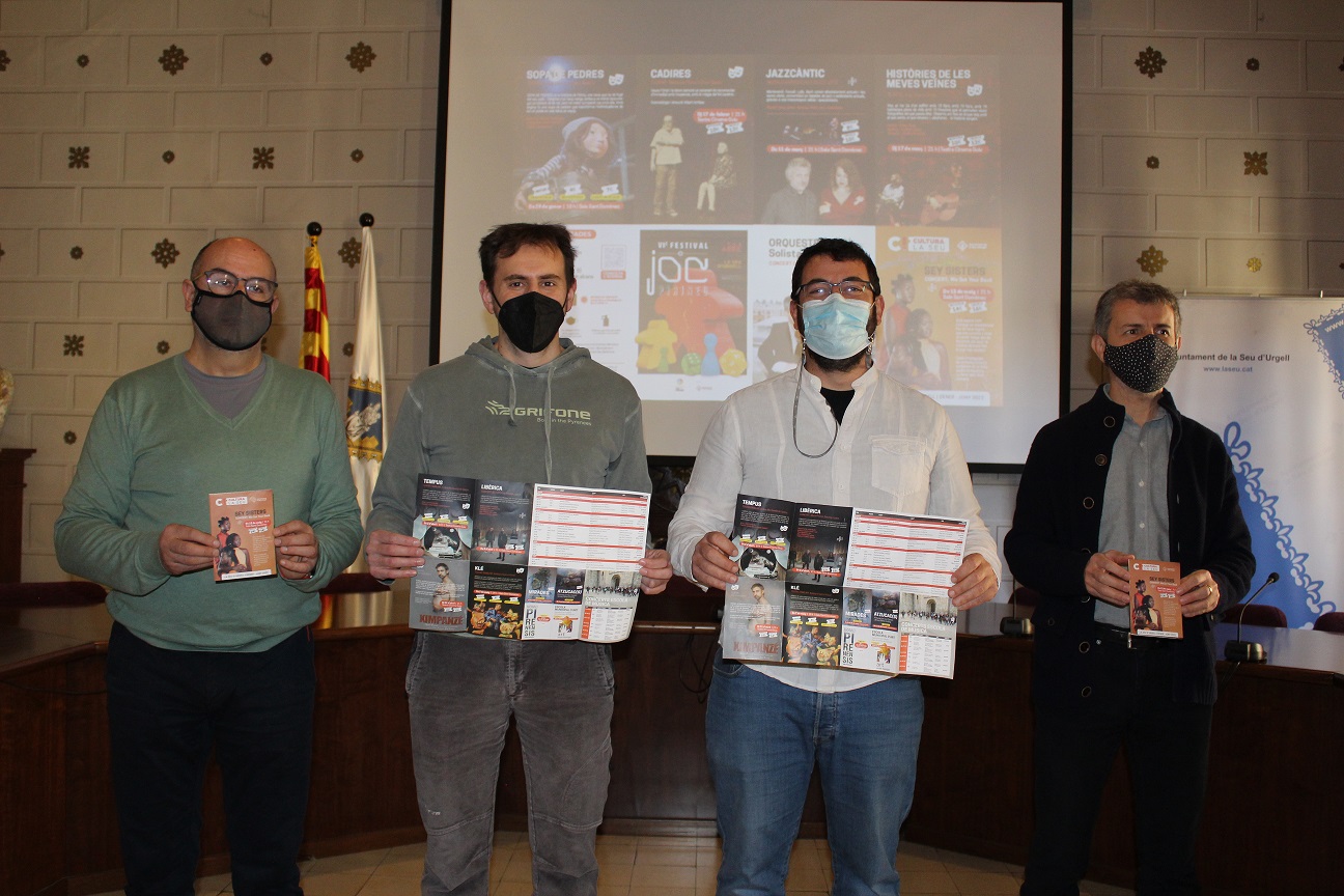 Així ho han explicat l’alcalde de la Seu, Francesc Viaplana, i el tinent d’alcalde de Cultura, Carlos Guàrdia, juntament amb els tècnics de l’Àrea de Cultura, Andreu Campillo i Albert Galindo. En la presentació, l’alcalde urgellenc ha remarcat “l’esforç que fa l’Ajuntament de la Seu d’Urgell per oferir una programació cultural per a tots els públics, i sempre que ho han permès les restriccions, no hem volgut renunciar en cap moment a la cultura. En aquest sentit, Viaplana ha subratllat “el treball i l’interès de l’Àrea de Cultura per mantenir aquest programació cultural al llarg de tot l’any, que tan necessària és”.