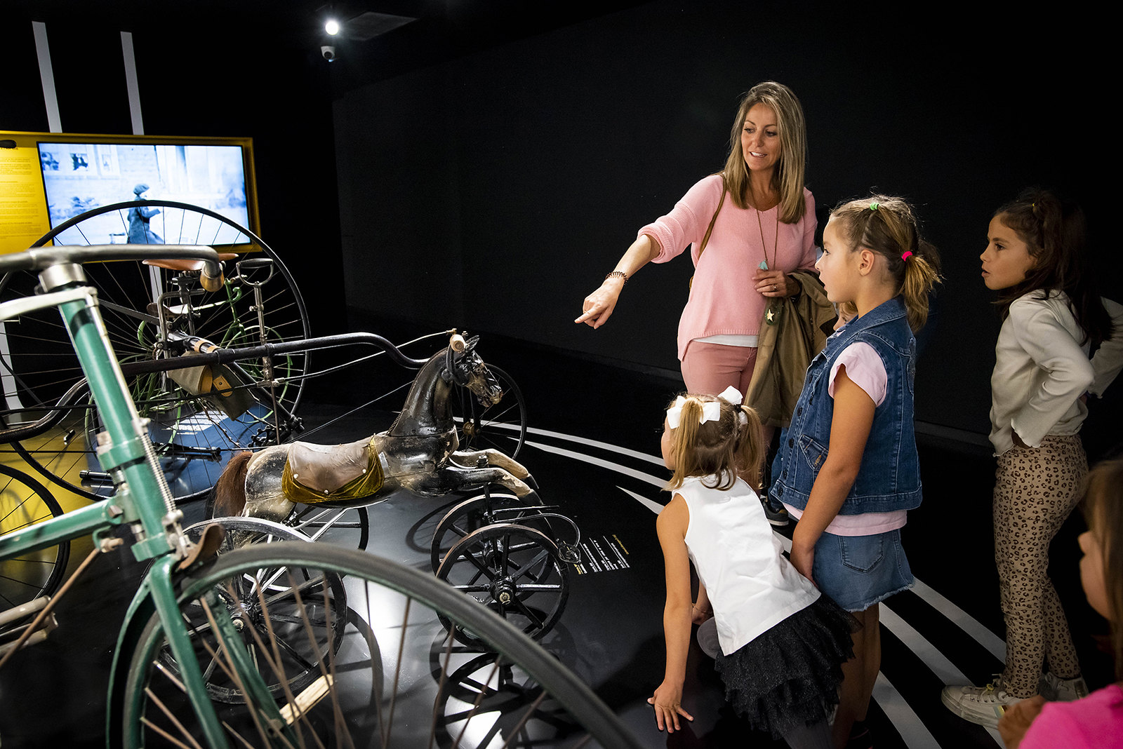 Però tornem a les bicicletes plegables del començament. Al BLA n’hi ha tres peces magnífiques: una fabricada el 1936 per a l’exèrcit britànic per la companyia Birmingham Small Arms Company, una Bianchi italiana del 1939, i una Peugeot francesa de la I Guerra Mundial. Val a dir que l’ús militar de les bicicletes va estar a punt de convertir-se en la primera exposició temporal del BLA. Al final es va optar per consens, diu Herms, per estrenar la sala temporal amb una mostra sota el lema La dona i la bicicleta, claríssim tribut al nou dogma contemporani que ho ha de passar tot pel sedàs de gènere. I consti que La dona i la bicicleta és una mostra estupenda –i gratuïta, a diferència de la col·lecció permanent, 5 euros l’entrada– on coneixem els casos de dones que van utilitzar les dues rodes per obrir-se camí a la vida, a la política i a l’esport d’elit, des d’Anne Londonderry, que el 1895 es va convertir en la primera dona que donava la volta al món en bicicleta, és clar, fins a la basca Joane Somarriba, tres vegades campiona del Tour i dues del Giro. A l’audiovisual que complementa l’exposició hi dona testimoni Ariadna Tudel, la nostra primera i fins a la data única ciclista professional.
