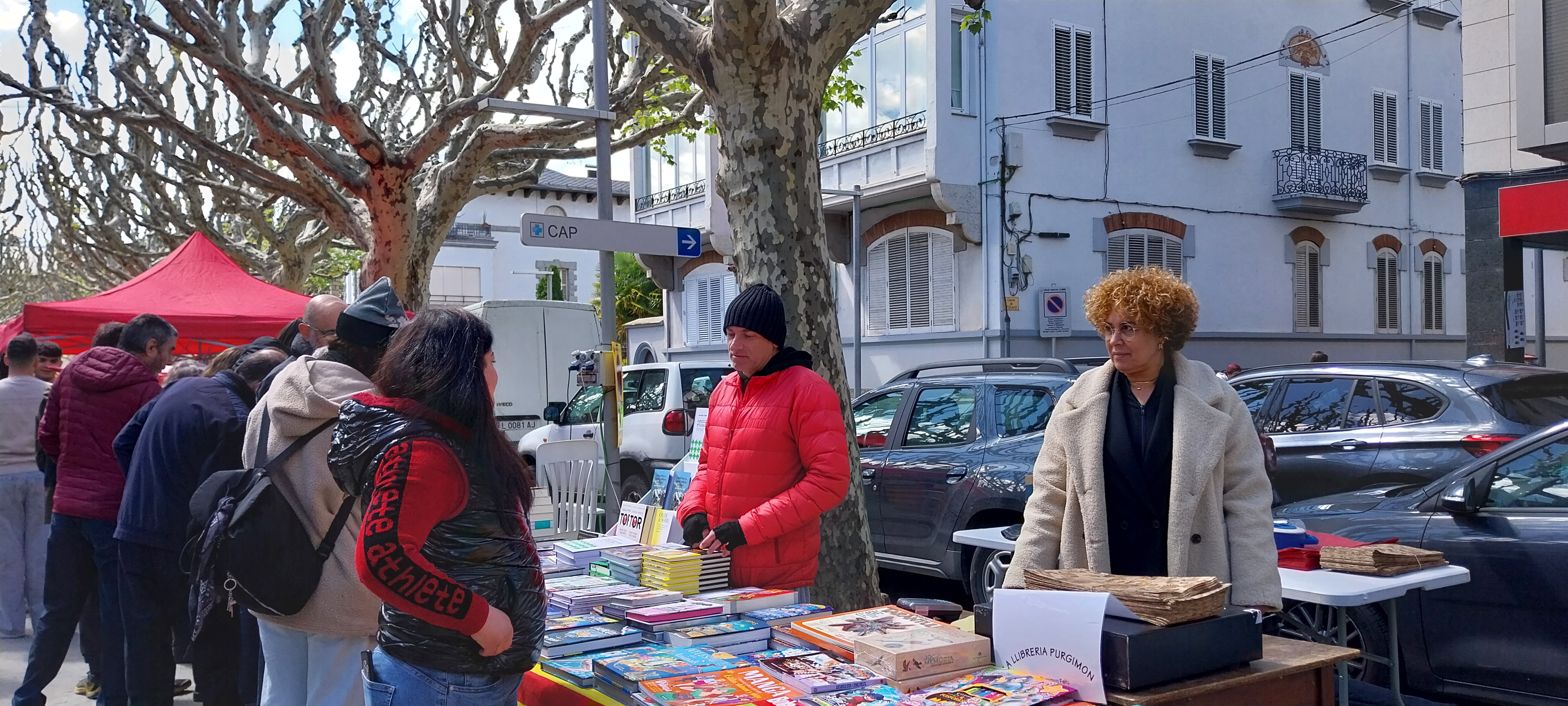 “El dia ha començat fluixet, a veure si a partir de la una això s’anima”, deia allà cap al migdia Xavier Purgimon, bufant-se les mans. I si a aquelles hores feia fred, imaginem-nos quan començaven a muntar. “Sí, ho pots dir, és un dels Sant Jordi més fred en molts anys”, corroborava. Confirmava després allò que sempre pregunta la premsa en un dia com aquest: els llibres més demanats de la jornada, sí, són els pirinencs, entre els quals incloïa no sols la producció local, sinó un títol vingut de fora però que explica coses d’aquí, Tor. Foc encès, on Carles Porta torna a esprémer els morts de la muntanya maldita.