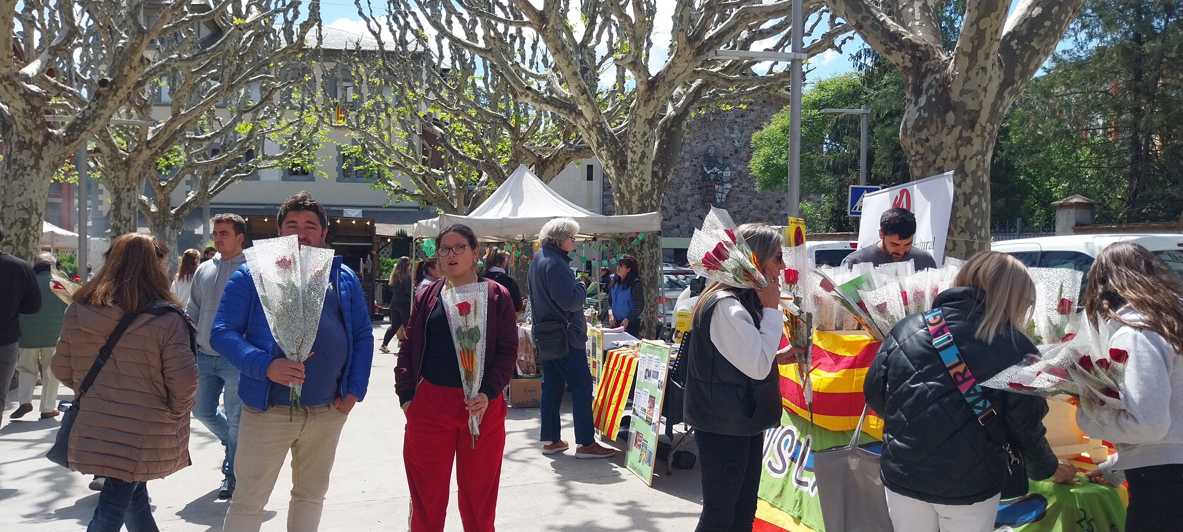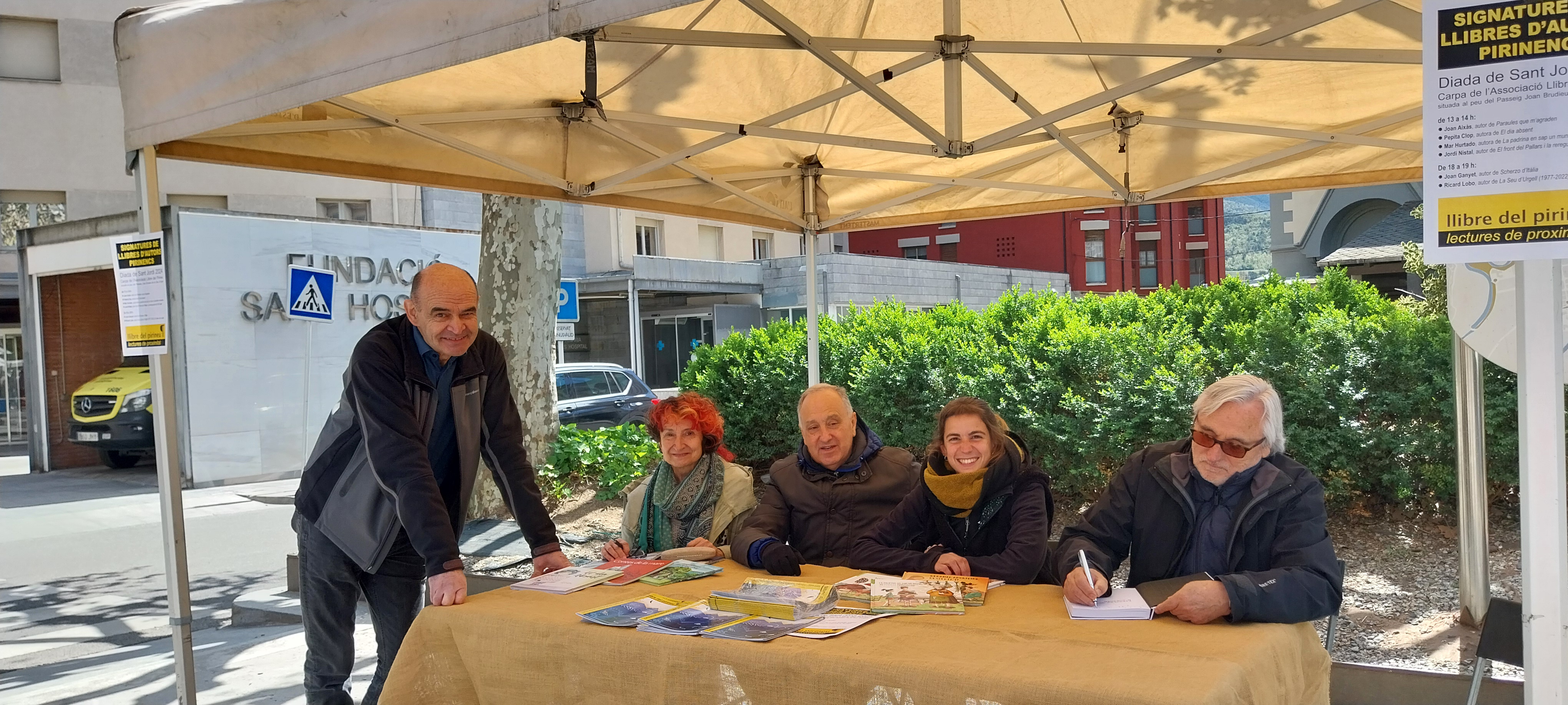 “Quina rasca, tu!” “Fot un fred que pela”. Aquestes dues, precedides només per la de “bon Sant Jordi” i similars, eren les frases més repetides en aquesta diada del llibre i la rosa de temperatures gèlides que el sol no aconseguia atemperar ni al passeig Joan Brudieu perquè bufava un vent inclement. Els llibreters venien llibres protegits amb gorres i bufandes, els passejants caminaven a pas més aviat lleugeret i buscant els punts de sol, i els autors signaven amb les mans enfundades en guants. Si més no, ho feia Jordi Nistal, autor d’un d’aquells títols ben buscats en la jornada, El front del Pallars i la vida republicana de l’Alt Urgell, mentre els companys de taula potser rumiaven per què no se’ls hauria ocorregut a ells.