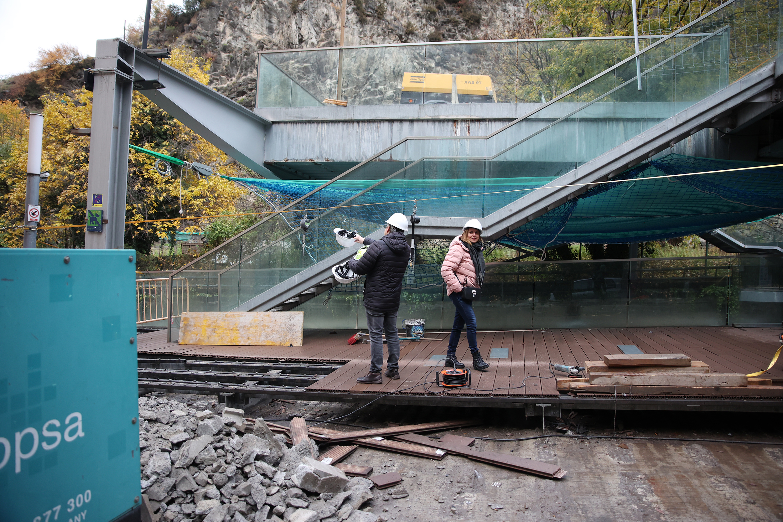 La intervenció va arrencar el 12 de novembre i simultàniament al passeig del Riu, als baixos de l’edifici Caldes i a la placeta del Madriu. Com hauran comprovat si hi han desfilat els últims dies, els operaris ja han retirat tot el sòl, i aquesta setmana s’ha començat a desmantellar el pont que fins ara travessava el riu a l’alçada de l’antic CIAM. Aquesta baluerna desapareixerà i serà substituïda per dues passarel·les molt menys agressives, en una operació que culminarà a finals de gener, segons les previsions. També es canviaran les escales i l’ascensor, i tots els baixos de l’edifici, que exercirà com a cor del Projecte Caldes, es deixaran en un sol nivell, sense peixera (té els dies comptats) i convertit, per tant, en un espai diàfan.