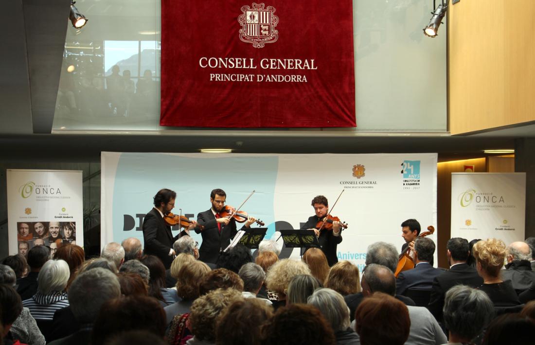 La Fundació ONCA, emparada pel Govern i la Fundació Crèdit Andorrà, organitza el tradicional concert de la Constitució. Enguany l'actuació serà a càrrec de la nova formació de corda de l'ONCA, el Quartet Americà, amb un programa titulat 'El quartet de corda des de nous mons'. L'esdeveniment tindrà lloc el 14 de març, a les 12 hores, al vestíbul del Consell General.