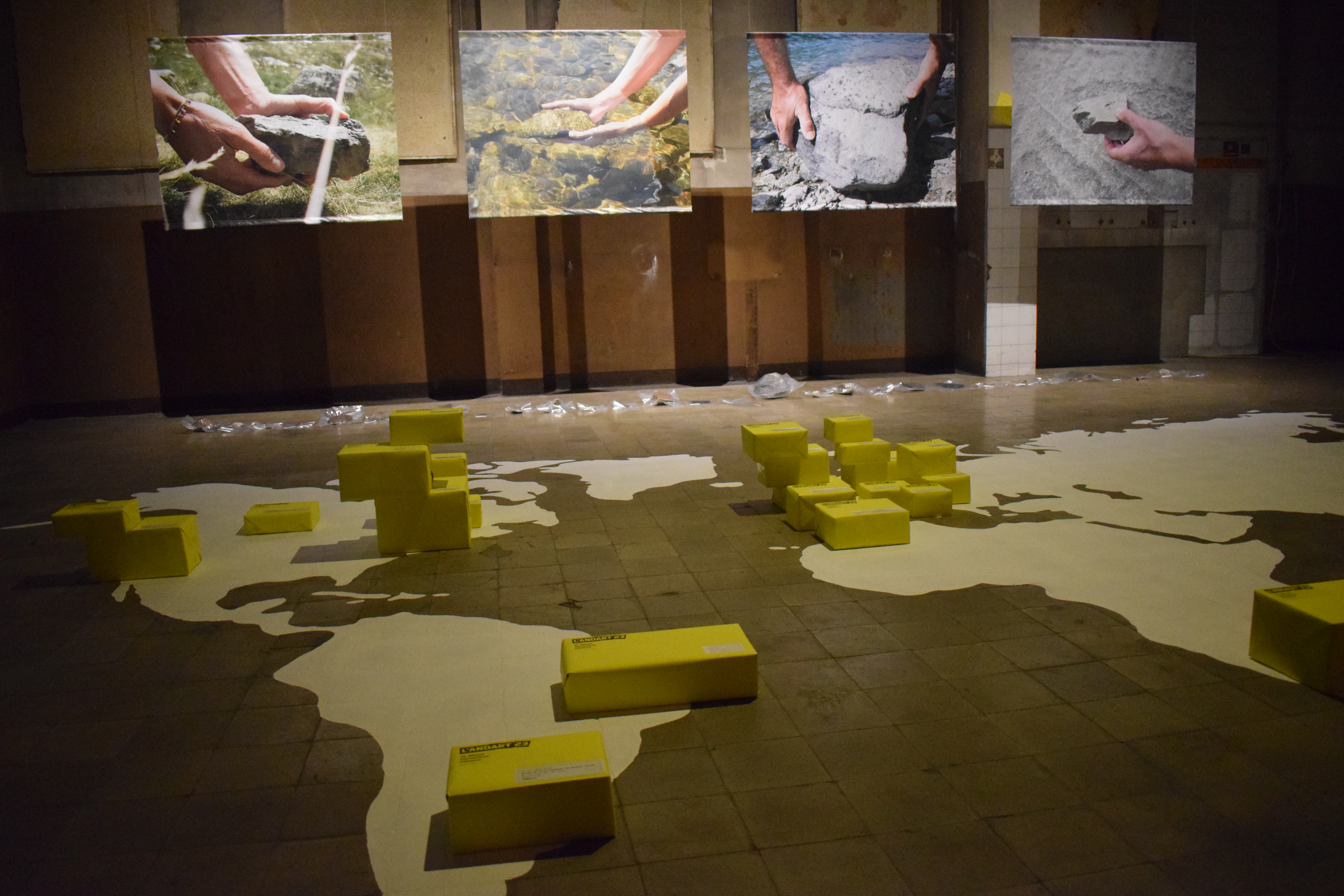 Olivier Thomas, escenògraf parisenc, lloa l’espai industrial abandonat com a escenari. La seva proposta visual s’entén millor quan n’especifica les intencions: ha recopilat pedres, rocs, trossets d’Andorra, que envia a diferens punts del planeta.