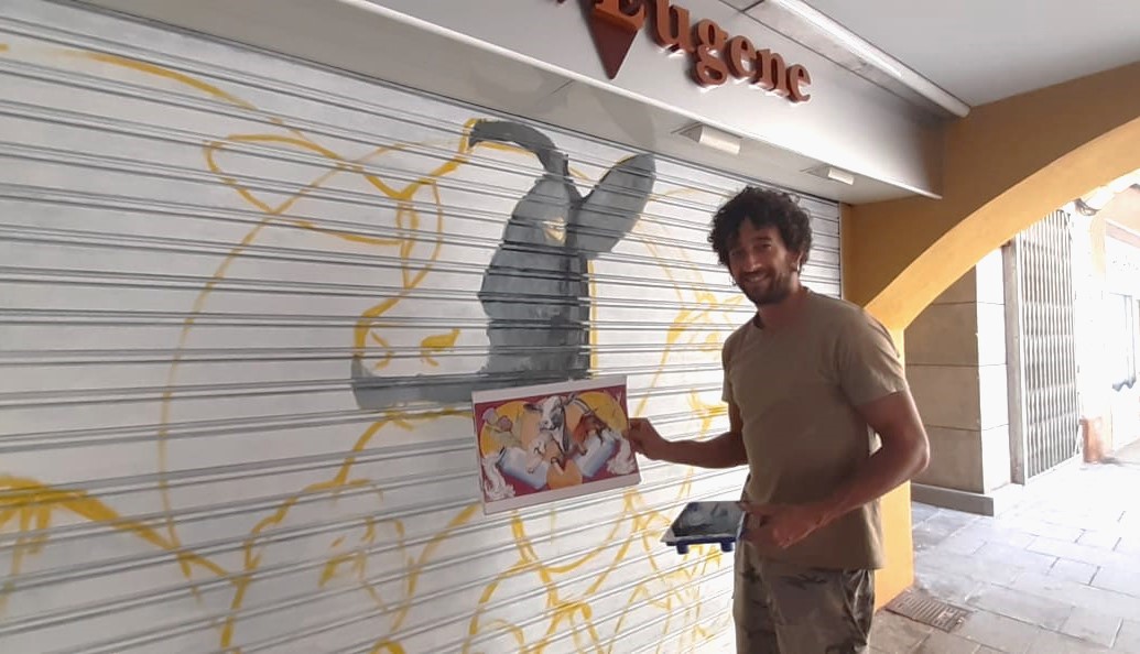 La jornada d’ahir, DIada nacional de Catalunya, no era festiva per a ben bé tothom: Arnau Orobitg s’afanyava per enllestir el grafit que il·lustrarà la persiana d’un emblemàtic comerç del carrer Major, la formatgeria Eugene. El propietari, Eugeni Celery, va encarregar un disseny per al seu establiment i ahir, mentre la botiga romania tancada, Orobitg s’hi dedicava. Un dibuix, obvi és dir-ho, que fa referència al sector lacti, ple de color. La iniciativa del comerciant (i no seria l’únic cas a la ciutat) s’afegeix a l’empresa des de l’Ajuntament, que fa no gaire també cedia l’espai i el material als joves del CAU per acolorir una lletja paret molt cèntrica, en un taller impartit pel mateix Orobit, o un altre mur al Poble Sec, dibuixat en aquest cas sota la supervisió d’Oriol Garreta.