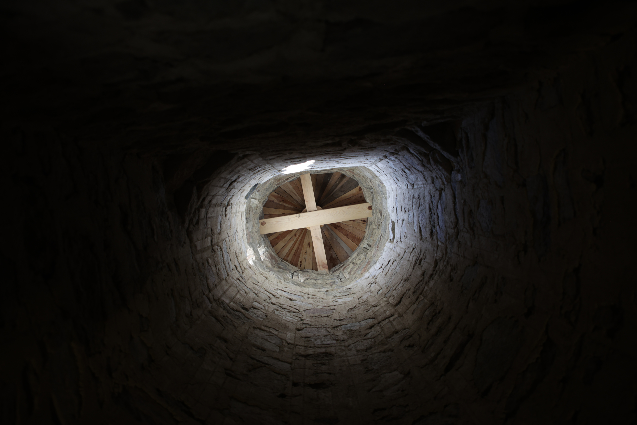 A l’interior del temple, en fi, i a banda del nou paviment de pedra, comprovaran que els murs de pedra vista, que són els originals, s’aixequen només fins a mitja alçada, i que més amunt estan arrebossats. L’arrebossat correspon al mur que es va aixecar de nou a la intervenció integral dels anys 70, perquè recordin que fins que va arribar Canturri la nau era una ruïna i només se’n conservava el campanar. Just al contrari del que va passar el 20 de desembre del 2019.