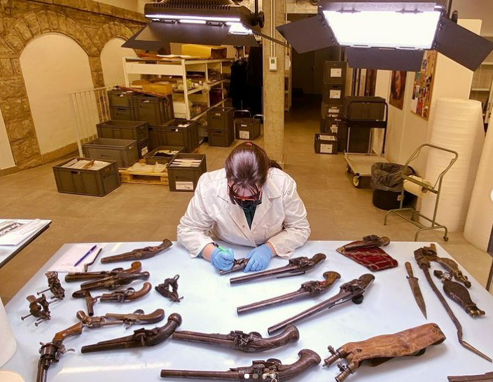 La vintena de pistoles d’aquí dalt donen per somiar si les portava una partida de soldats supervivents potser (o fugitius) de la desfeta de Castellciutat, l’últim bastió carlí a Catalunya, l’agost del 1875. O qui sap del frustrat setge de Puigcerdà, que el temible general Savalls, d’altra banda garrotxí, havia hagut d’aixecar l’any abans, per dues vegades i amb la cua entre les cames. Però d’ocasions per somiar n’hi ha a centenars, perquè “cada caixa és una sorpresa: no sabem què en sortirà, i és molt emocionant anar-les obrint a veure què hi ha”, diu la restauradora Mireia Tarrés.