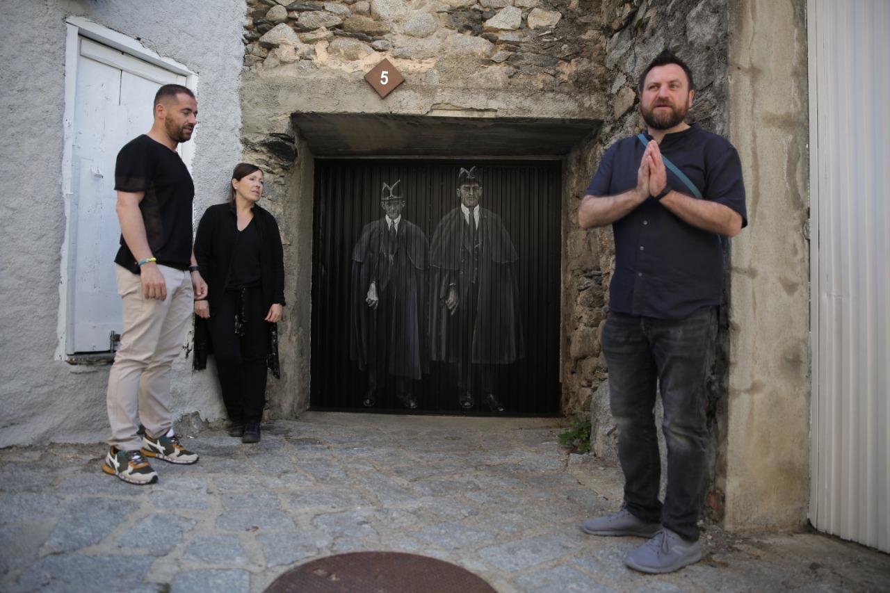 Ja des d'aquest matí, l'artista estava pintant al carrer Perdut el mural d'un Peugeot 201, un dels vehicles particulars habituals a la parròquia, amb la figura dels seus propietaris. Tot i que, un dels primers murals que ja es poden contemplar és el de la figura del que va ser síndic general als anys 30, Roc Pallerés, retratat a la porta del garatge de la casa on va viure. Al costat, l'acompanya el que en aquella època va ser el subsíndic, Agustí Coma, originari d'Ordino.