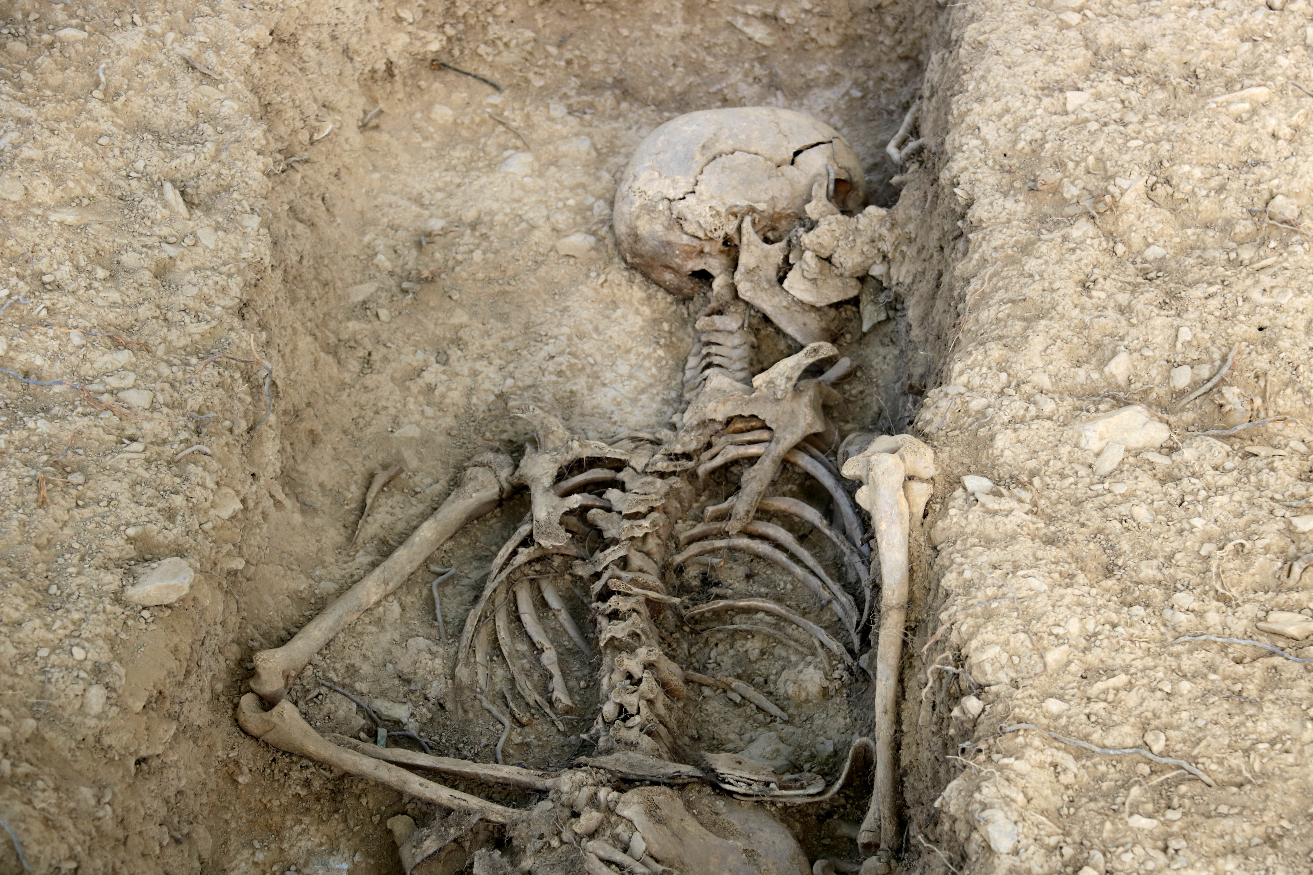 Anna Camats, directora arqueòloga de l'excavació, ha explicat que els treballs arqueològics de l'excavació han permès localitzar, de moment, a 12 individus. Les restes han aparegut en fosses individuals no gaire profundes i disposades en dues fileres, on els individus apareixen principalment en posició bocaterrosa. Les restes, a causa possiblement de les propietats del sediment i la profunditat en què estan enterrats, es troben en un estat de conservació fràgil.