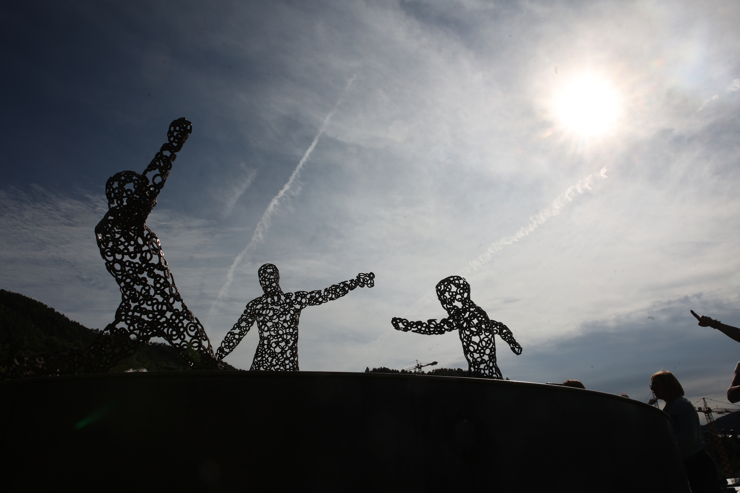 Tot el que precedeix és perquè vegin que Cruz és amb tota probabilitat l’artista amb més obra a la nostra via pública. I una mica més encara des d’ahir que es va inaugurar oficialment Esforç, destresa i passió, una al·legoria dels valors que comporta la pràctica de l’esport encarnada en una família –el pare, un noi i una nena– que es disputen una pilota de futbol en un espai que li va com anell al dit: la rotonda d’accés al Centre de Tecnificació i al camp de futbol d’Ordino. La gràcia, diu, és que tot i estar fetes d’acer –185 quilos de res: etèries, però no tant– les escultures són dinàmiques i interactuen amb complicitat, com si estiguessin executant una dansa al voltant de la pilota. L’acer corten, adverteix, s’anirà rovellant amb la intempèrie fins a adquirir un to grogós, i llavors –ell calcula que cap a la primavera– li aplicarà una capa de vernís perquè la pàtina quedi estable.