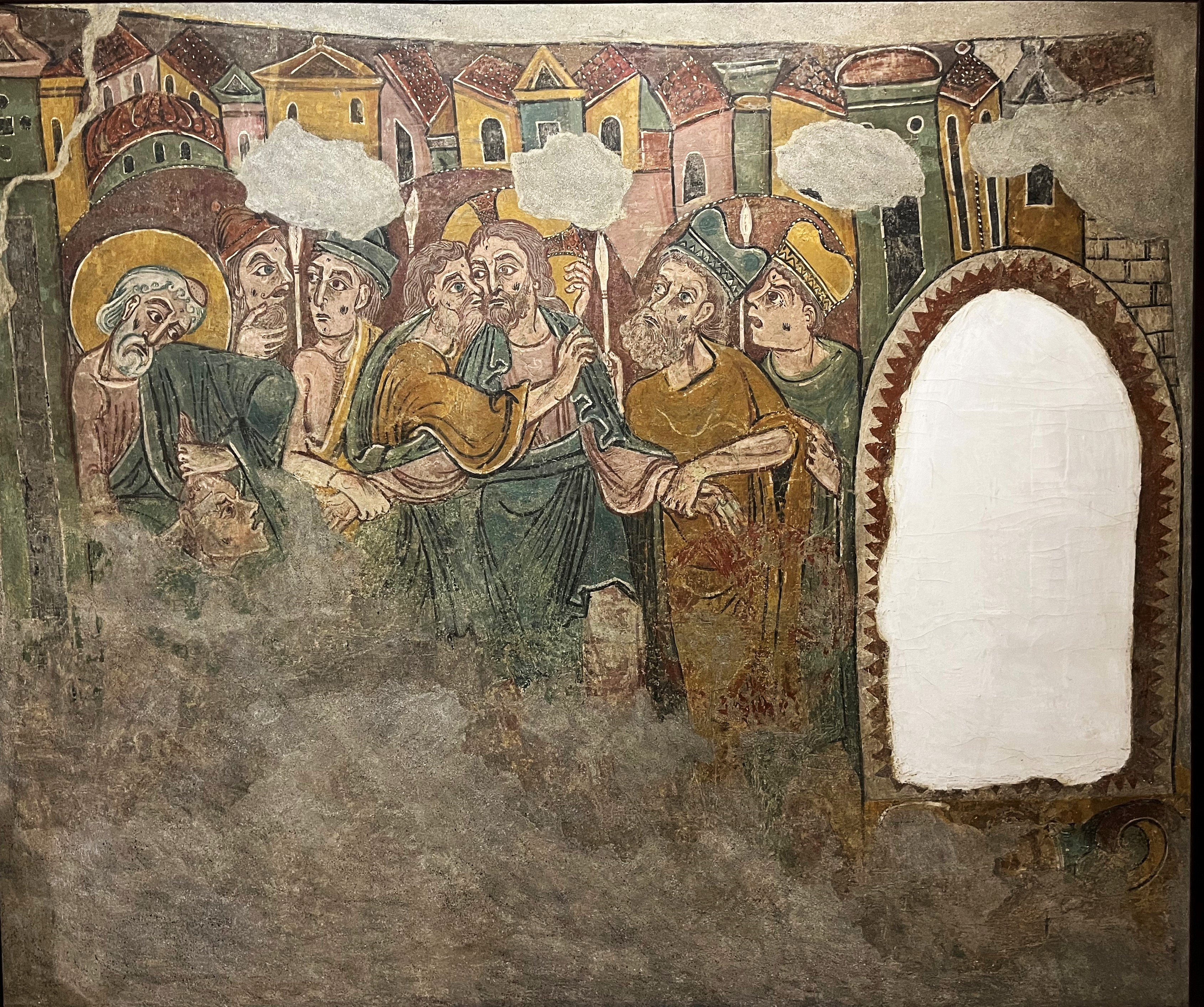 L’un i l’altre, en fi formen part del cicle de La Passió de l’arxiprestal de Sant Esteve, obra cabdal del Mestre d’Andorra datada als dos primers decennis del segle XIII. El cicle sencer el completaven altres dues escenes, El lavatori de Crist, avui al Prado, i La coronació d’espines o Els improperis, conservat des del 1934 al MNAC. La decoració de l’absis romànic de Sant Esteve es completava amb la reglamentària Maiestas Domini, avui desapareguda, i el Tetramorf amb els símbols dels quatre evangelistes, dels quals només s’ha conservat fragmentàriament el brau de Sant Lluc, també al MNAC.