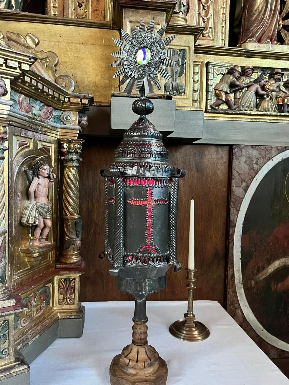 El que ja és una estupenda realitat és la llàntia o fanal processional que les acompanyava. Una andròmina possiblement del XIX que acompanyava les processions –se’n feien per Corpus, per Sant Roc, per Sant Isidre i pel Roser– i que va estar en ús fins a la reforma del 1926, quan desapareix del mapa. Quan va ressuscitar dintre del mateix armari que el Sant Isidre, el Sant Esteve i la Mare de Déu de Roser estava en condicions molt més precàries i per això se la va enviar de pet a cal restaurador. A Retoc, per concretar, on se li va practicar un tractament de xoc per retirar-li el rovell centenari i les restes de cendra, i per restituir les pèrdues de suport, especialment els rajos de l’ostensori, que s’han hagut de reconstruir de nou –només en quedaven tres de disset–. Des de divendres llu a l’altar el seu nou destí, perquè ja no sortirà en processó dalt d’una perxa, sinó que donarà llum al sagrari: “Hi surt guanyant el patrimoni, hi surt guanyant la parroquial i hi surten guanyant els feligresos. Un win-win total”, conclou Lizarte.