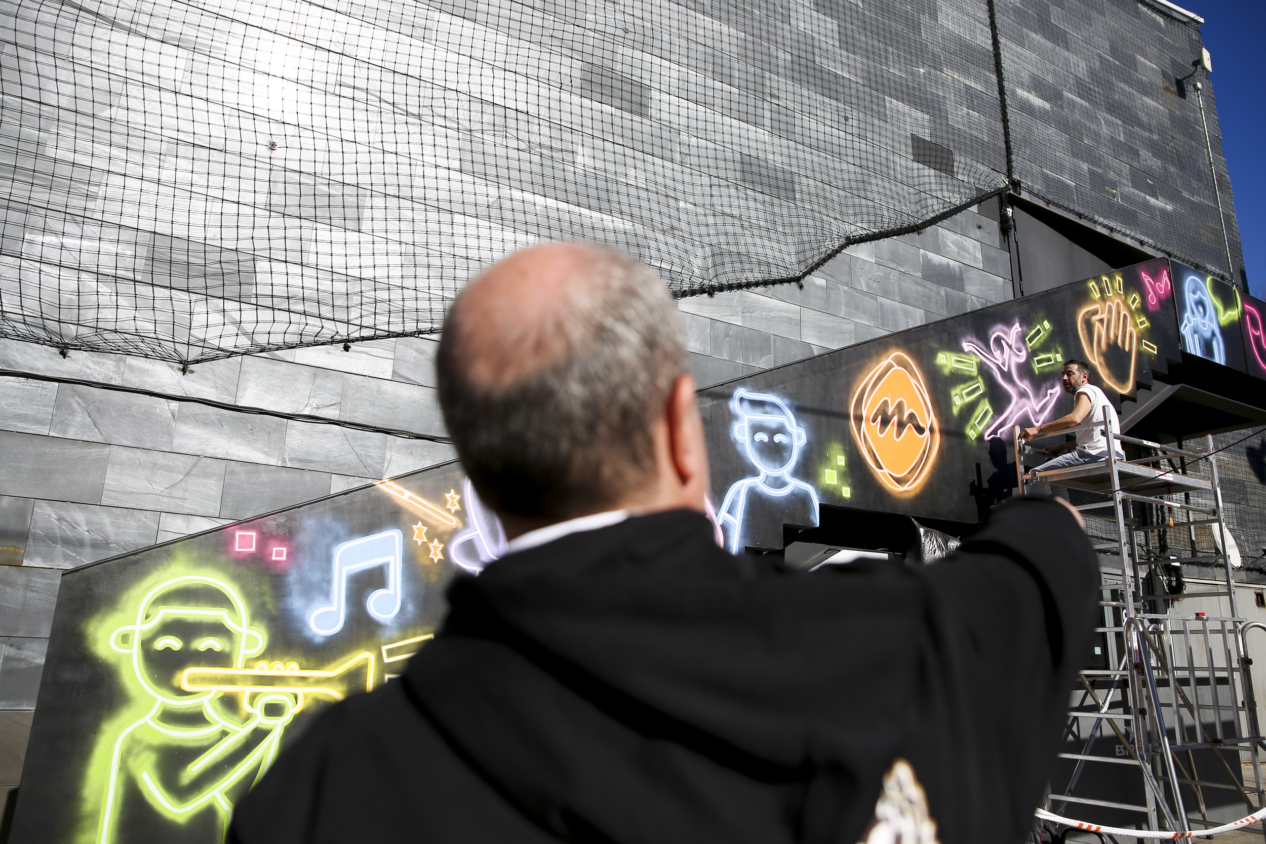 Està bé, sí. Però està encara millor que la Massana reincideixi ara amb un mural grafiter al mur lateral de les Fontetes que Pere Moles i Tito Ferré (Reunió de Papaia, vaja) conclouran avui mateix. Es tracta d’un encàrrec del Comú, que volia il·lustrar el racó de la plaça amb temes escènics: 25 metres quadrats sobre un suport dificilíssim de ferro, diu Moles, que ha impedit utilitzar l’acrílic. Així que tot amb esprai, pur estil suburbà. Tot plegat un pelet fake perquè, com admet Moles, “no som precisament grafiters sinó dissenyadors”. Tampoc és el primer mur que embruten: recordin la instal·lació de realitat augmentada a l’aparcament de l’antic hotel Casino, al land art del 2015, i el magatzem de Feda a Engolasters, aquesta mateixa edició.