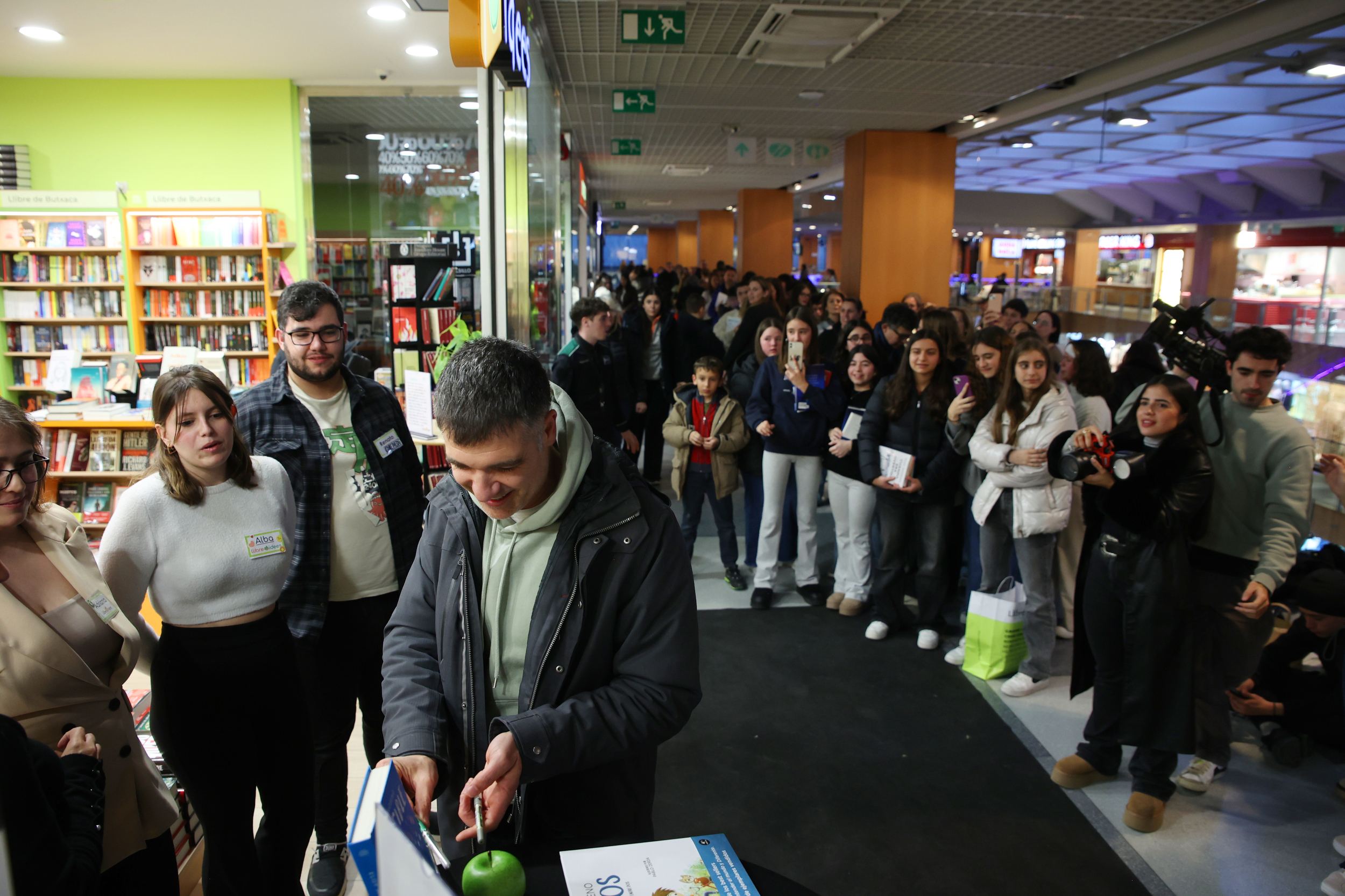 Mirin que m’he empassat sessions de firmes. I de presentacions. No té cap mèrit, és que em paguen per això. N’hi poden posar una vintena cada any, així a ull nu. I multipliquin per un quart de segle perquè la cosa sigui rodona. Doncs em poden creure que mai, però és que mai, havíem vist una cosa així. És que ni remotament. La cita amb el valencià Eloy Moreno a la llibreria Idees era a les 18.30 hores. Mitja hora abans la cua, ben nodrida, posem que de tres o quatre en fons, ja arribava a la zona de restauració. I no va parar de créixer. Tot molt endreçat i civilitzat, per cert. L’Eloy –els seus seguidors, sobretot noies posem que entre poc i molt adolescents, li diuen pel nom, com si fos de la família– arriba puntual, saluda la llibretera, Pamela Méndez, observa de refiló el que li espera, dedica somriures a tort i a dret, es fa unes quantes selfies i entra a matar.