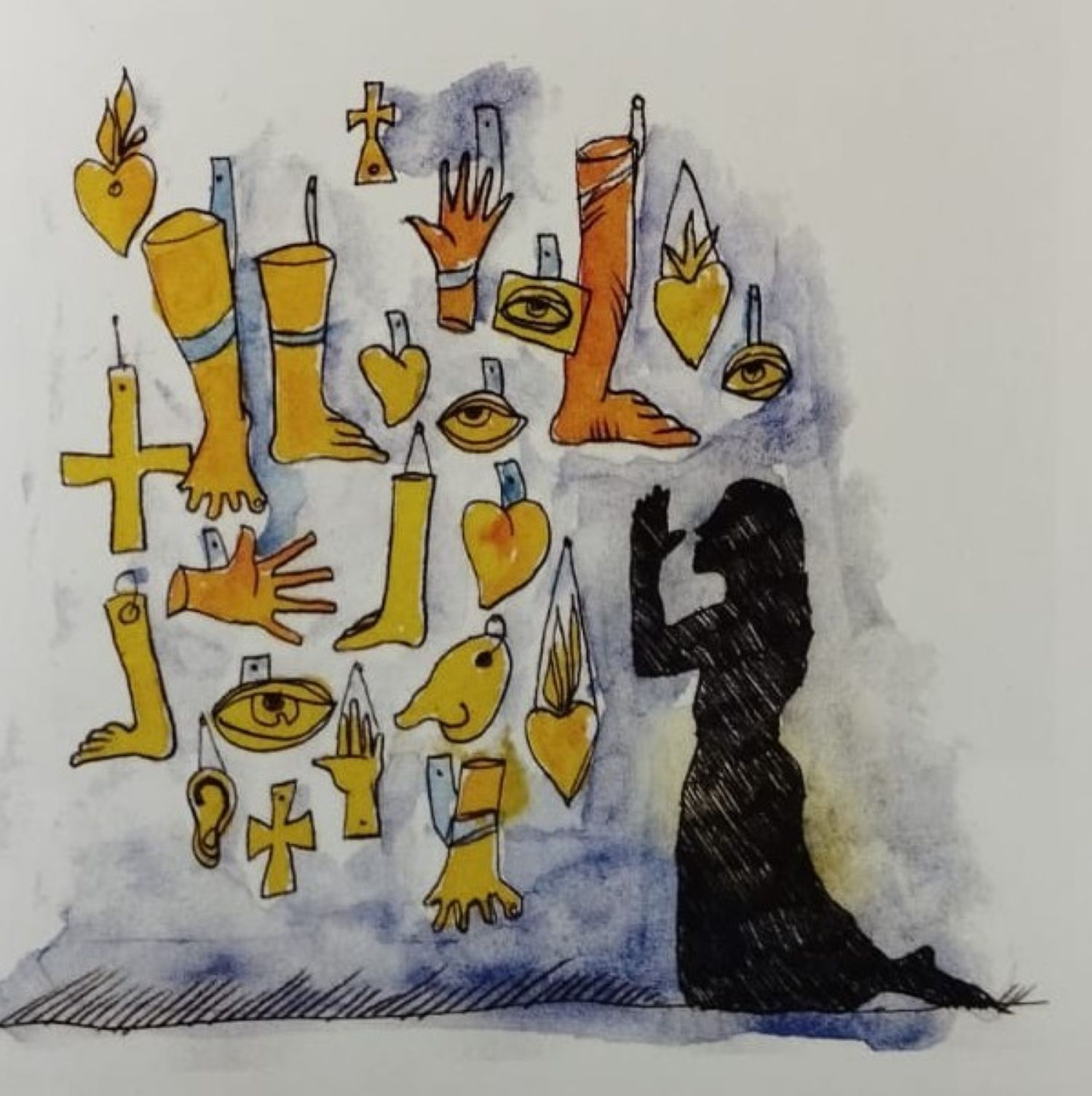 Una mà, un peu, un turmell, una orella, una cama fins a la cuixa i una altra de sencera, tres ulls (cadascun per la seva banda), quatre cors, moltes creus, dos parells de crosses i una figura de cos sencer (però sense peus). Aquest és grosso modo l'inventari dels exvots de cera que encara es poden contemplar a l'oratori de Sant Antoni de la Grella, i ho consignem aquí per tres motius: el primer de tots, que molt probablement sigui la primera notícia que tenen d'aquest minúscul oratori, just abans de l'entrada dels túnels en direcció a la Massana; la segona que això dels exvots de cera és una formidable relíquia d'uns altres temps. De fet, dels últims dos mil·lennis, com a mínim, esglésies, capelles i oratoris acostumaven a reservar un raconet a aquesta pelet gore forma de pietat, probablement heretada dels romans i que consisteix a agrair al sant titular o a la Mare de Déu la intercessió per curar una malaltia o afecció. Només cal que recordin les fotografies del santuari vell de Meritxell, amb els murs interiors folrats de figures de cera. Tot això es va acabar una generació enrere, però se'n conserva el vestigi a l'oratori de Sant Antoni. I per molts anys sigui.