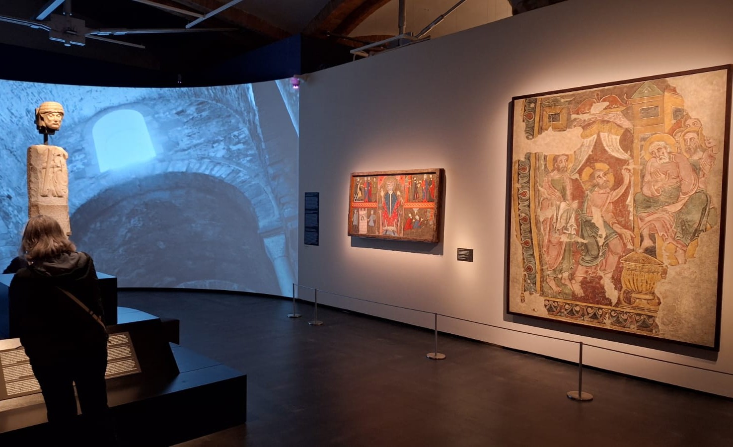 En qualsevol cas, és una oportunitat única per contemplar de prop el Lavatori, un dels quatre plafons del cicle de La Passió que acompanyaven el Crist en Majestat de l'absis de Sant Esteve. Avui in situ no en queda res. El bes de Judes i la Flagel·lació, recordin, van tornar dos anys enrere –previ pagament de 2,7 milions d'euros– i avui s'exposen a l'Espai Columba, i dels Improperis només en queden fragments, dipositats al MNAC. La decoració mural de l'arxiprestal incloïa també una Anunciació, a l'absidiola lateral (avui també al MNAC).