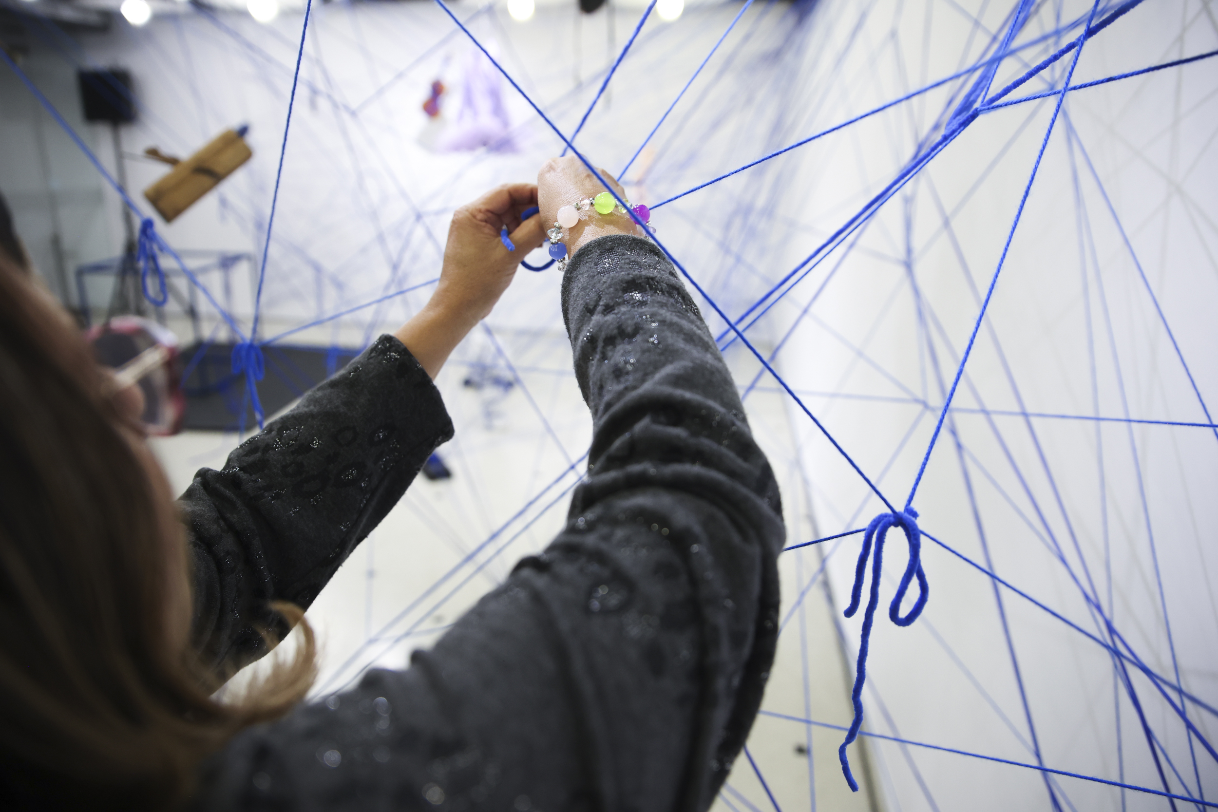 I és precisament aquesta comunitat la que simbolitza la instal·lació/performance creada pels alumnes de les tres escoles de la Llacuna amb què ahir al vespre va arrencar el modest cartell per celebrar l’aniversari: es titula Lligams, i consisteix en essència en una xarxa de cordó blau, que ho és de La Llacuna, que vincula simbòlicament les disciplines que s’hi imparteixen i que representa també les relacions humanes que s’hi han anat teixint al llarg els anys. Una estupenda simbiosi de dansa, música i arts plàstiques que es pot contemplar al vestíbul de l’edifici i que va acabar amb l’acròbata, Júlia Guàrdia, repartint trossets de cordill entre els assistents. Es tractava que en acabar l’acte els lliguéssim a la xarxa mare i cal dir que, lamentablement, només s’hi van animar quatre gats.