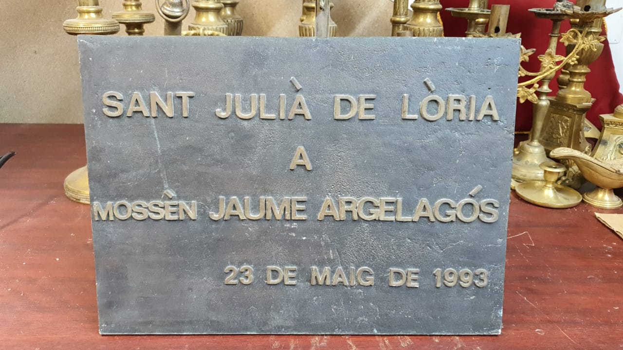 Diguem abans d’acabar, en fi, que mossèn Pepe aprofitarà la reforma per tornar a instal·lar a la placeta del peu del campanar el memorial a mossèn Jaume Argelagós que el Comú li va dedicar el 1993 i que es va haver de retirar en l’última reforma del temple. Simeó de Guinda no li traurà el lloc, perquè la placeta del bisbe serà la de dalt de les escales, i mossèn Jaume Argelagós tornarà per tant a la seva.