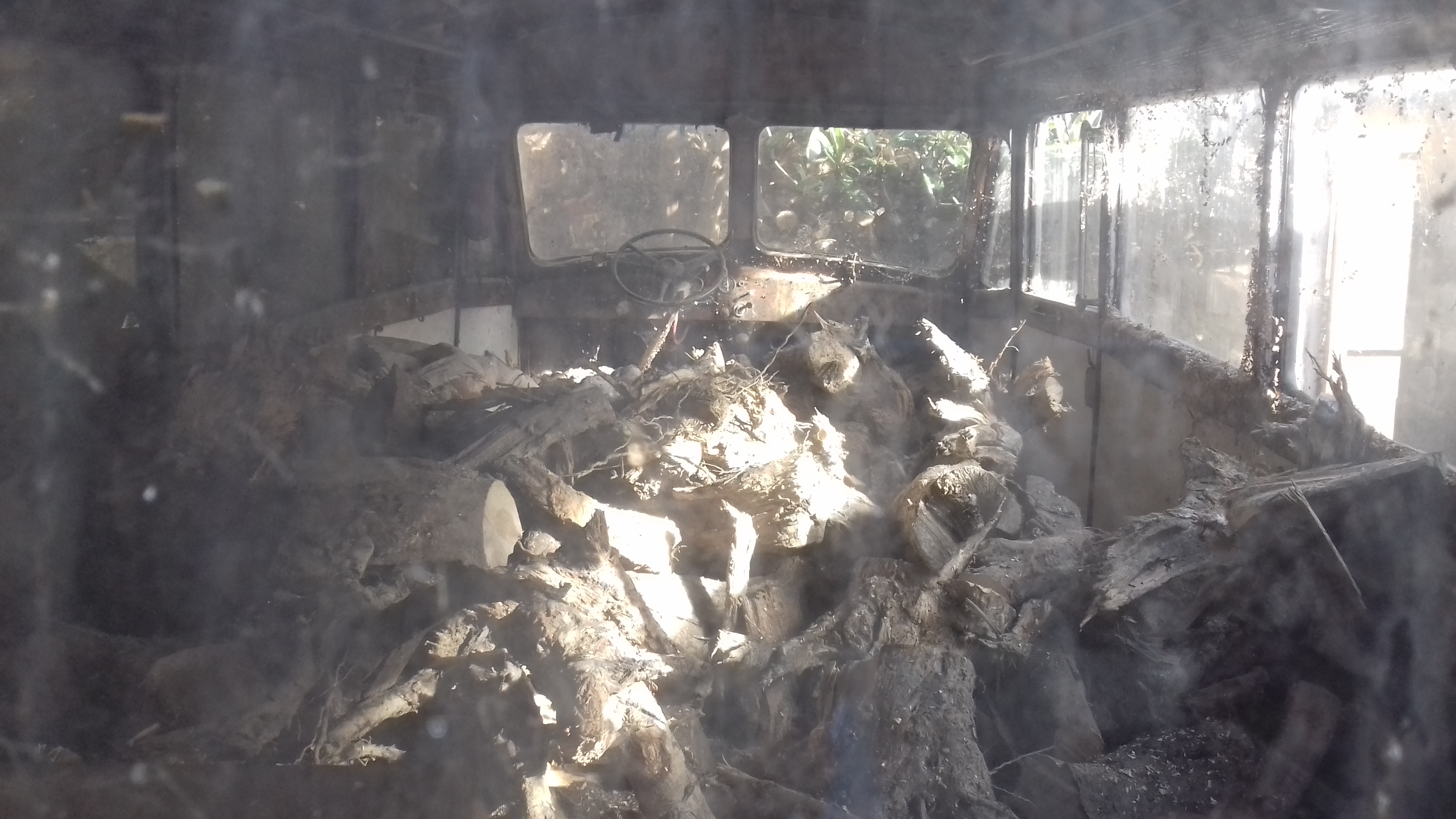 La cosa anirà més o menys així: en previsió que els baixos estiguin podrits i per evitar que l’estructura cedeixi al seu propi pes –2.000 quilos, calculen els tècnics, perquè el vehicle ha perdut els seients, però conserva en canvi el motor íntegre– s’hi faran passar unes planxes que vagin de banda a banda del xassís, la ploma l’aixecarà i el dipositarà sobre el camió grua saltant pel mur. Tot això, en un espai que amb prou feines deixa mig metre per banda, perquè el Fargo està entaforat entre la muntanya i el mur de totxo que es va aixecar per delimitar el solar i que no té porta de sortida de vehicles.