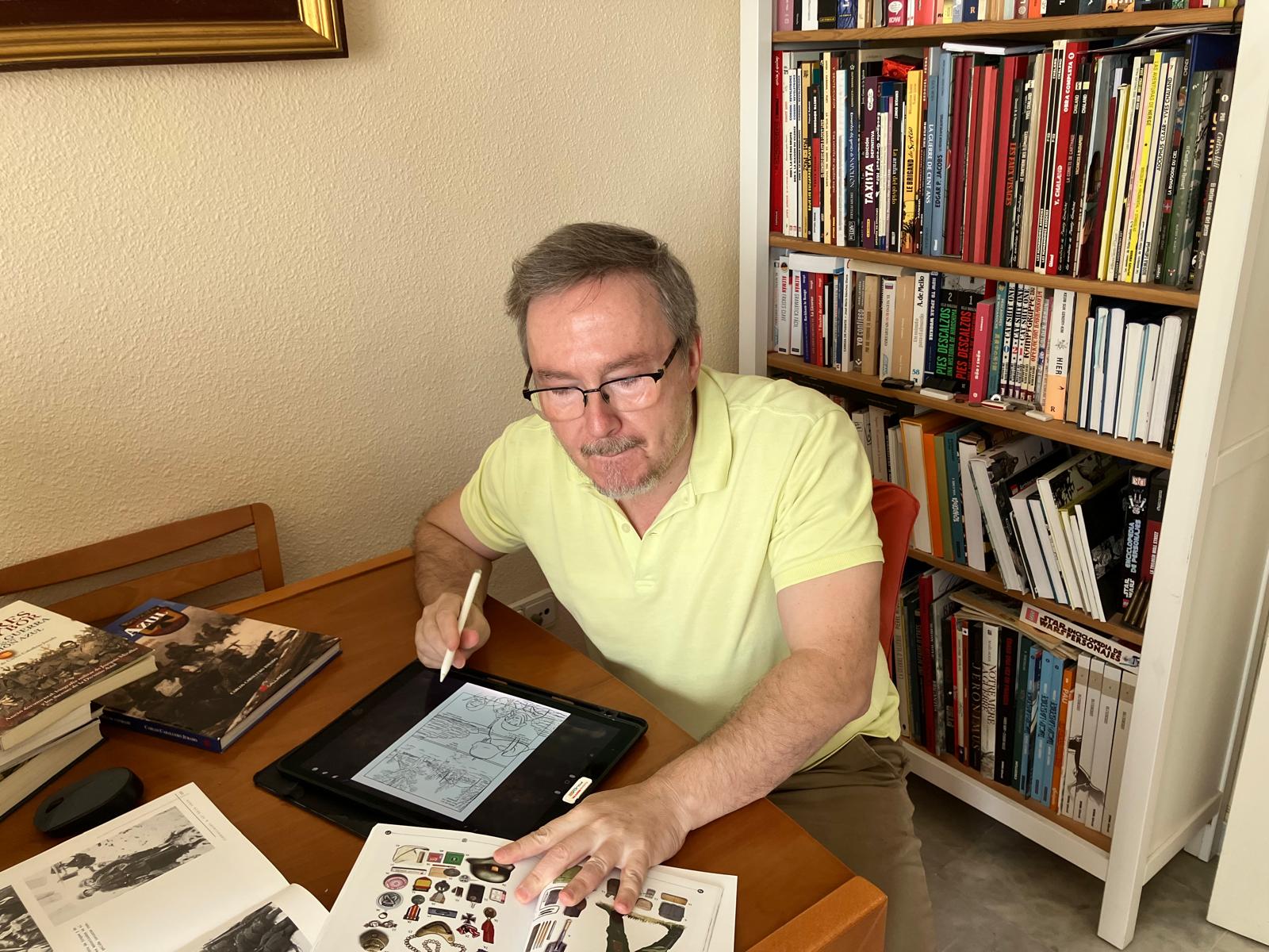Sí. La tasca de recerca en uniformes, armes i altres elements és minuciosa. El meu ofici, abans que res, és el d’historiador, i per això començo sempre el treball submergint-me en una vasta bibliografia sobre la Divisió. Busco històries que comprenguin un moment històric significatiu i que alhora estiguin acompanyades de testimonis capaços de sostenir un relat humà, carregat d’emoció i dramatisme. Evito la temptació d’inventar una ficció, perquè la meva consciència d’historiador no m’ho permet; però també també fujo d’una narració merament documental, freda i sense ànima. Quan per fi dono amb el relat adequat, concentro els meus esforços en la recreació dels ambients: les cases i llogarrets rusos, la vida aspra a les trinxeres, l’armament, els uniformes… Per això torno a capbussar-me en llibres especialitzats, però també en l’art rus i en el cinema. És una feina pacient, gairebé de formiga, que exigeix constància. Crec que són aquests detalls els que afegeixen versemblança a unes històries que ja són reals.
