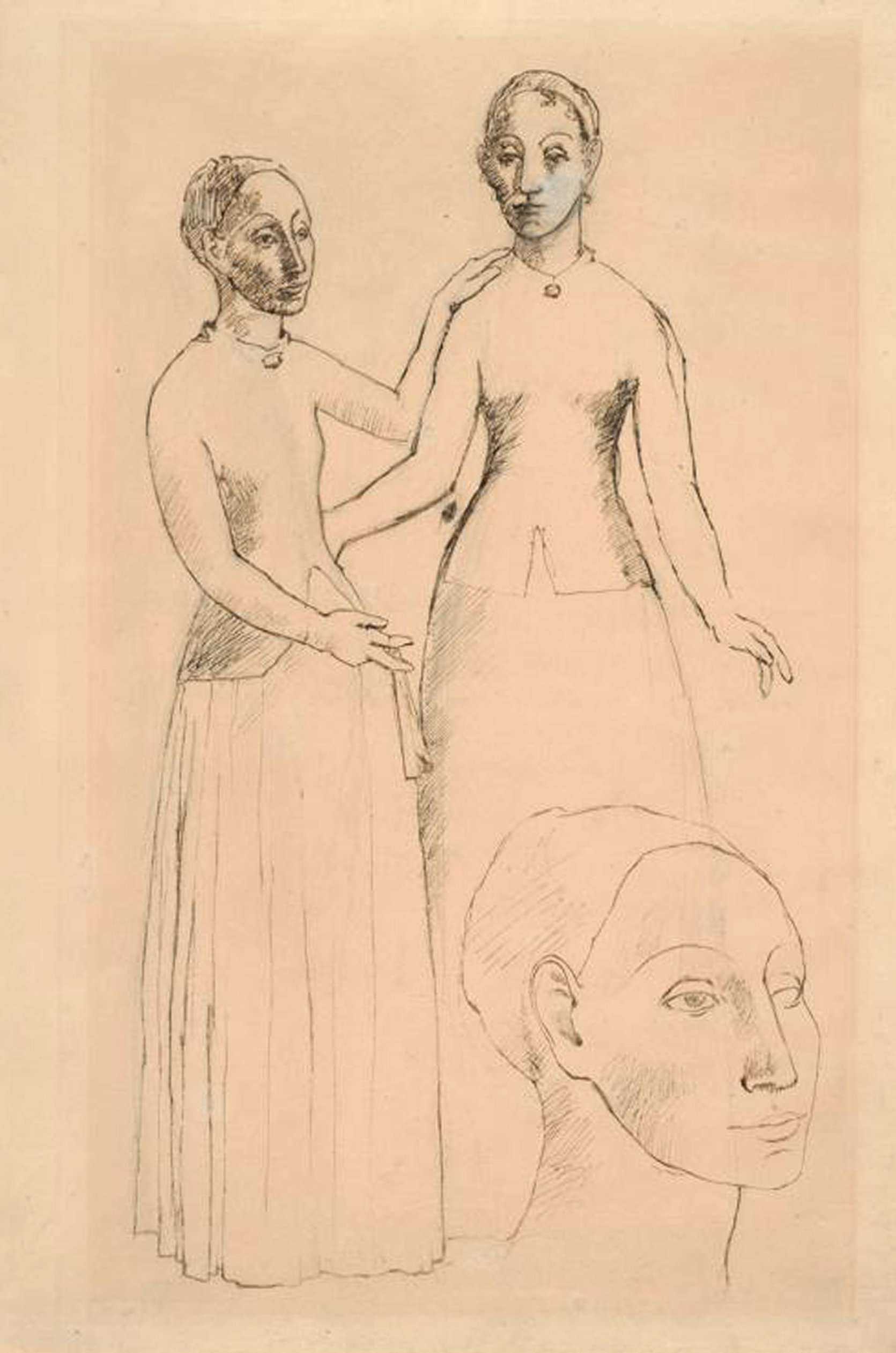 És cert que la interpretació de Boncompte és pelet rocambolesca, però és una interpretació. I tan plausible o més que qualsevol altra. Si mirem amb atenció les paysannes no és difícil percebre-hi una retirada amb les nostres talles romàniques –Sergi Mas la veu clavada a la de Meritxell– ni amb les demoiselles d’Avinyó. També és cert que el títol del dibuix és absolutament excèntric, perquè Picasso no titulava les seves obres, amb l’alta excepció del Guernica. Però al dors del dibuix ja hi figurava Paysannes d’Andorre quan va ingressar a l’Art Institute, el 1930, i amb aquest nom figura al catàleg canònic de Pierre Daix autoritzat per Picasso en persona (tot i les reticències de Palau i Fabre).