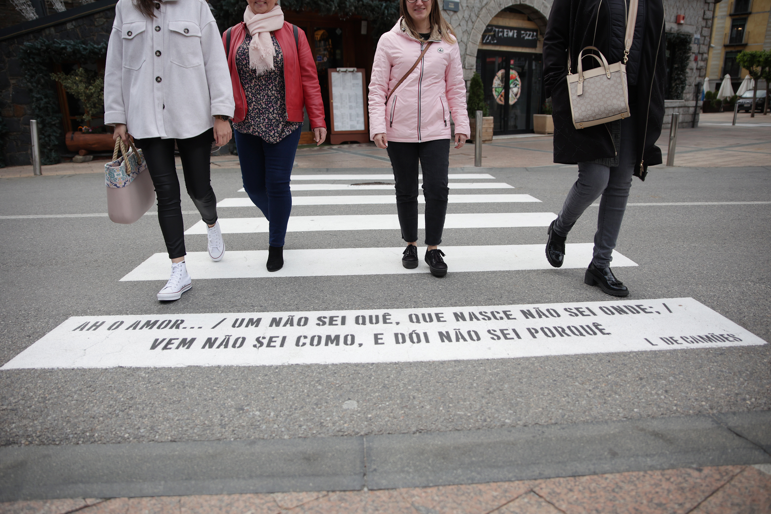 Així que poesia urbana no era la que escriu el basc Karmelo Iribarren o, per no anar tan lluny, el nostre Nacho Mayo. No. Poesia urbana és la que s’escriu directament sobre l’asfalt, aquí no hi caben les metàfores, una estupenda ocurrència que el Comú de la capital va estrenar fa uns anys a Riberaygua i Travesseres i que ara repeteix, de nou amb l’excusa de la Setmana de la Diversitat però al centre històric que, francament, convida una mica més al lirisme. Ho han d’haver vist, per poc que hi hagin passejat últimament: una vintena de passos de vianants de l’avinguda Meritxell, Príncep Benlloch, Mossèn Tremosa, Mossèn Cinto Verdaguer i Doctor Nequi, així com els que toquen a les places Guillemó, Benlloch i Rebés han aparegut il·lustrats amb versos d’autors més o menys cèlebres –poetes, sí, però també cantants, polítics i prohoms en general, ja ho veuran–, i el resultat són unes pastilletes amb pensaments, aforismes, sentències o màximes que s’adiuen com anell al dit en aquests temps de Twitter, autoajuda i coaching.