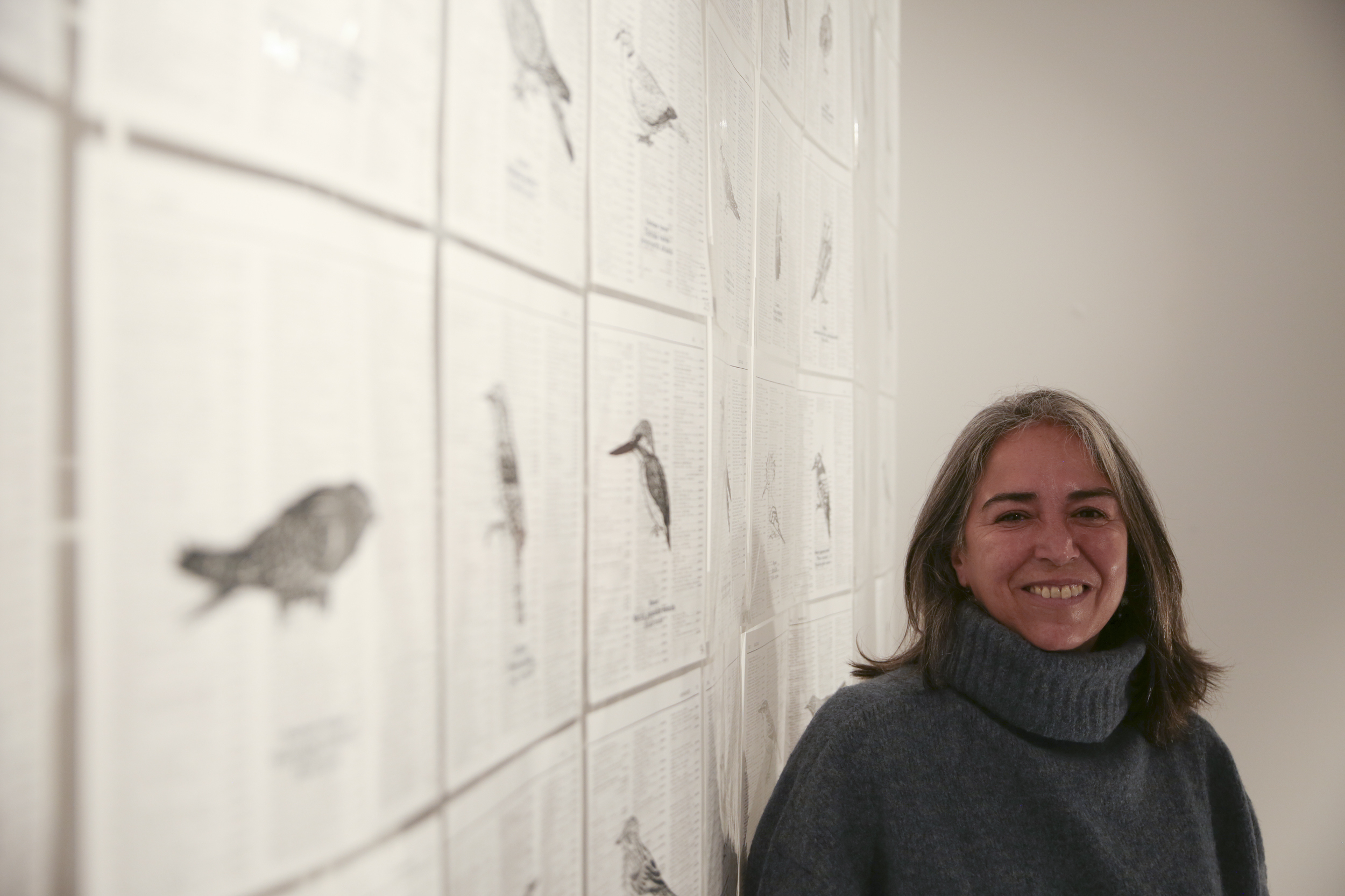 84 aus migratòries, en fi, forma part d’Oblit i identitat, la col·lectiva que fins al 31 de desembre es pot visitar a la galeria Riberaygua, i amb cita prèvia, i que inclou propostes igualment suggestives de Jordi Casamajor, Eve Ariza, Montserrat Altimiras i Emma Regada. I no s’hi amoïnin, que en parlarem.