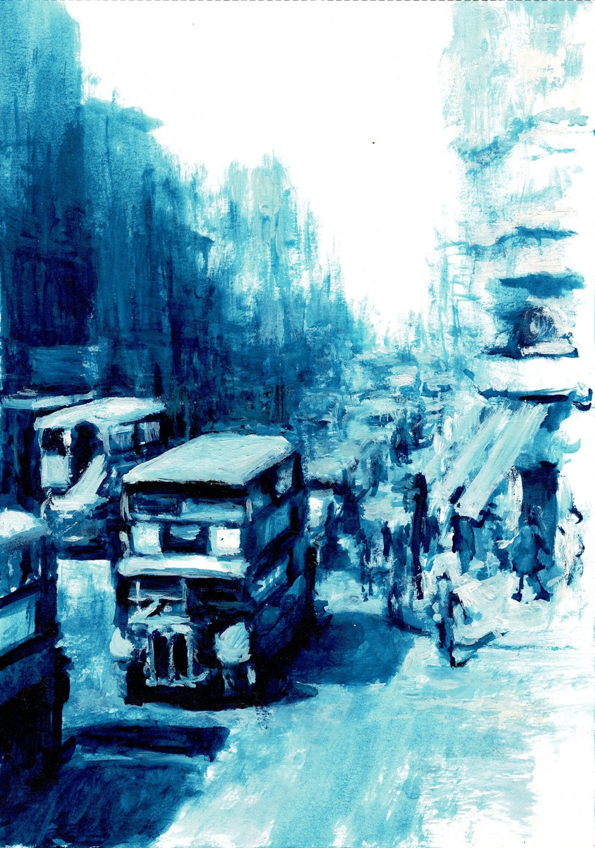 N'hem dit peces perquè són exactament això, artefactes que es mouen entre la ficció i l'assaig, i dir-li literatura de viatges al que una londinenca com la Woolf va escriure sobre la seva ciutat seria potser inexacte. I aquest gènere ambigu, que no és ni carn ni peix o que, millor dit, ho és tot a la vegada, és un dels atractius que hi va veure l'Arnau quan va posar fil a l'agulla. I això que, confessa, mai abans no n'havia llegit res. El repte, diu, era posar-se al servei de l'autora, però portant-la al seu terreny. I resulta que el seu terreny és també el de la gran Virginia: la fascinació pel paisatge urbà, per brogit, per les vides que es creuen i descreuen durant uns segons en una avinguda o en un carrer i que mai més tornaran a confluir. Moments únics a la història de l'univers que queden atrapats pel pinzell de l'Arnau.