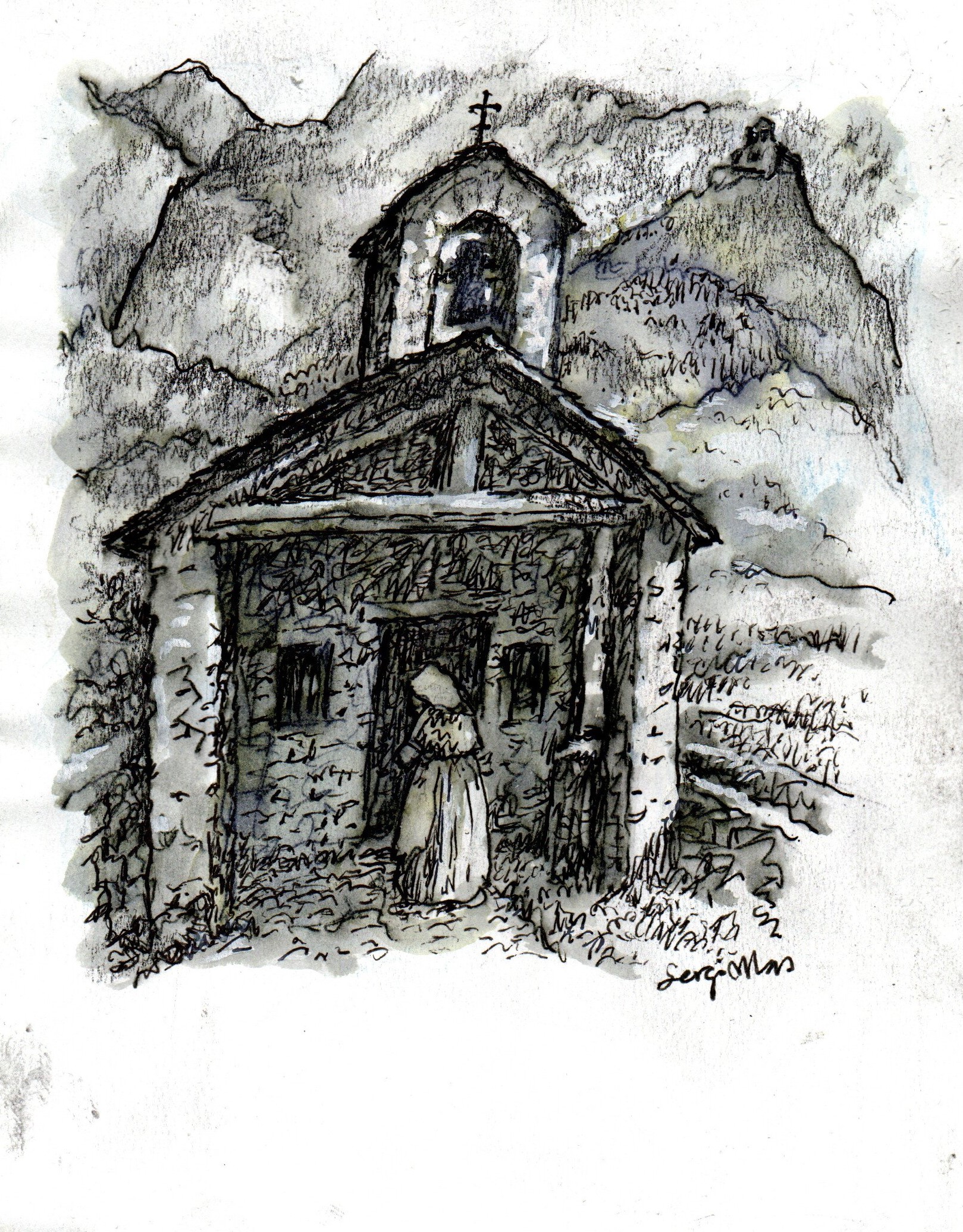L’escriptora novaiorquesa devia renunciar a endinsar-se per les afraus de l’estreta vall del riu d’Aós, perquè després d’agrair les amables atencions del veïnat d’Aixovall girà cua, retraspassà l’esvelt pontet i després d’aturar-se uns moments davant de l’oratori-capella que conté un retaule barroc dedicat a la Mare de Déu de Canòlich, “venerada patrona de Laurèdia i ses contorns”, com diuen els goigs que li canten els fidels creients de la parròquia i els de més enllà, reprengué la marxa pel camí ral vers la veïna parròquia d’Andorra la Vella, que s’anunciava entre l’estretor de la bauma de la Margineda i els primers alterosos roquissars de la serralada del Pi de la Bondat.