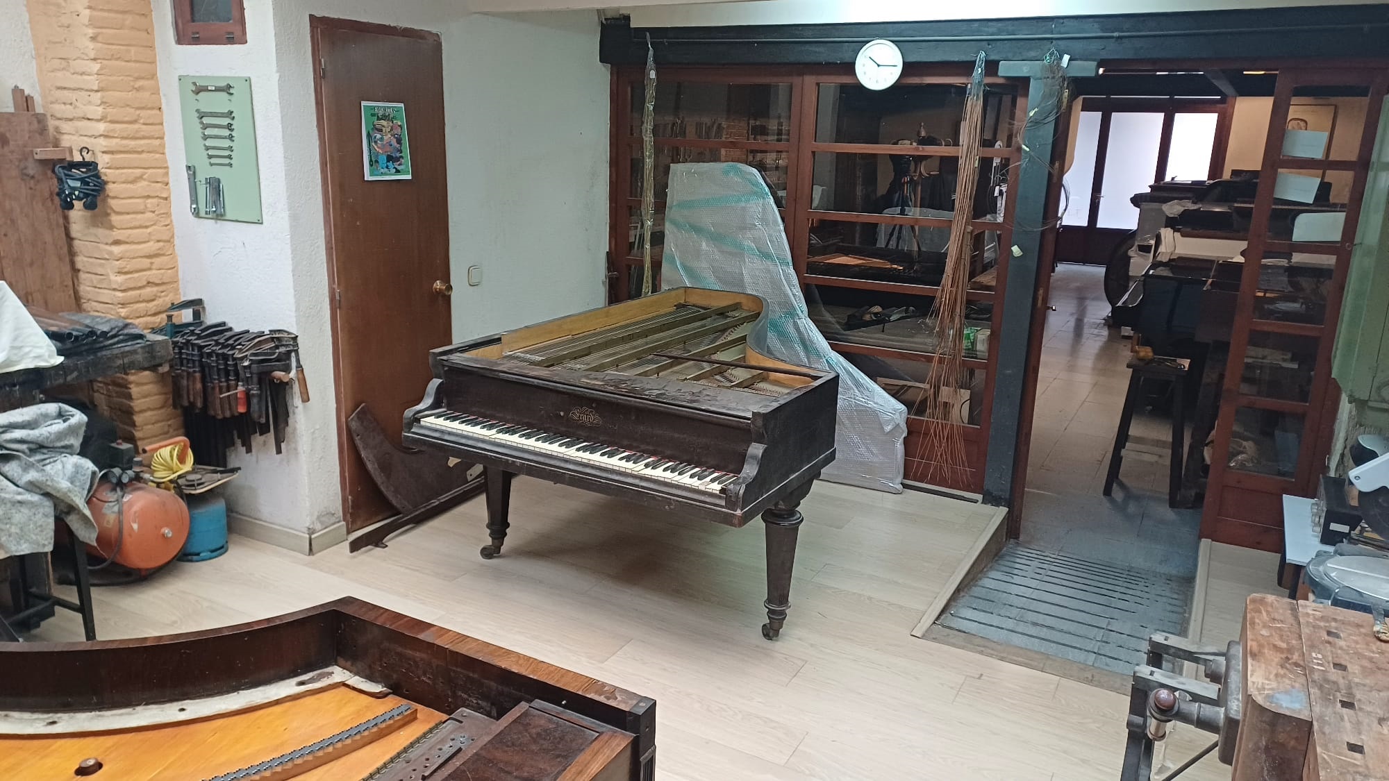 Tenia, diu Cornella, les patologies habituals en instruments d’edat provecta i que s’han conservat en condicions adverses: l’ivori de les tecles renegrit, algunes no es podien accionar, la fusta de la caixa harmònica estava molt esquerdada a causa del clima sec d’Andorra, les cordes molt deteriorades... Res d’irreversible, diu. “Però els pianers no fem miracles: podem restaurar o substituir les peces més malmeses, però continuarà sent un piano del 1870. Un molt bon piano, això sí, perquè la casa Érard va ser una de les primeres a fabricar instruments a gran escala, va introduir el ferro colat a la caixa de ressonància per suportar millor l’enorme pressió que exerceixen les cordes, i molts dels grans pianistes i compositors del XIX van treballar amb un Érard. Però no serà el més adequat per tocar peces del 1900 en endavant, quan canvia la forma de construir-los i en lloc de distribuir les cordes de forma vertical es passa al sistema que anomenem de corda creuada, que és l’actual.”