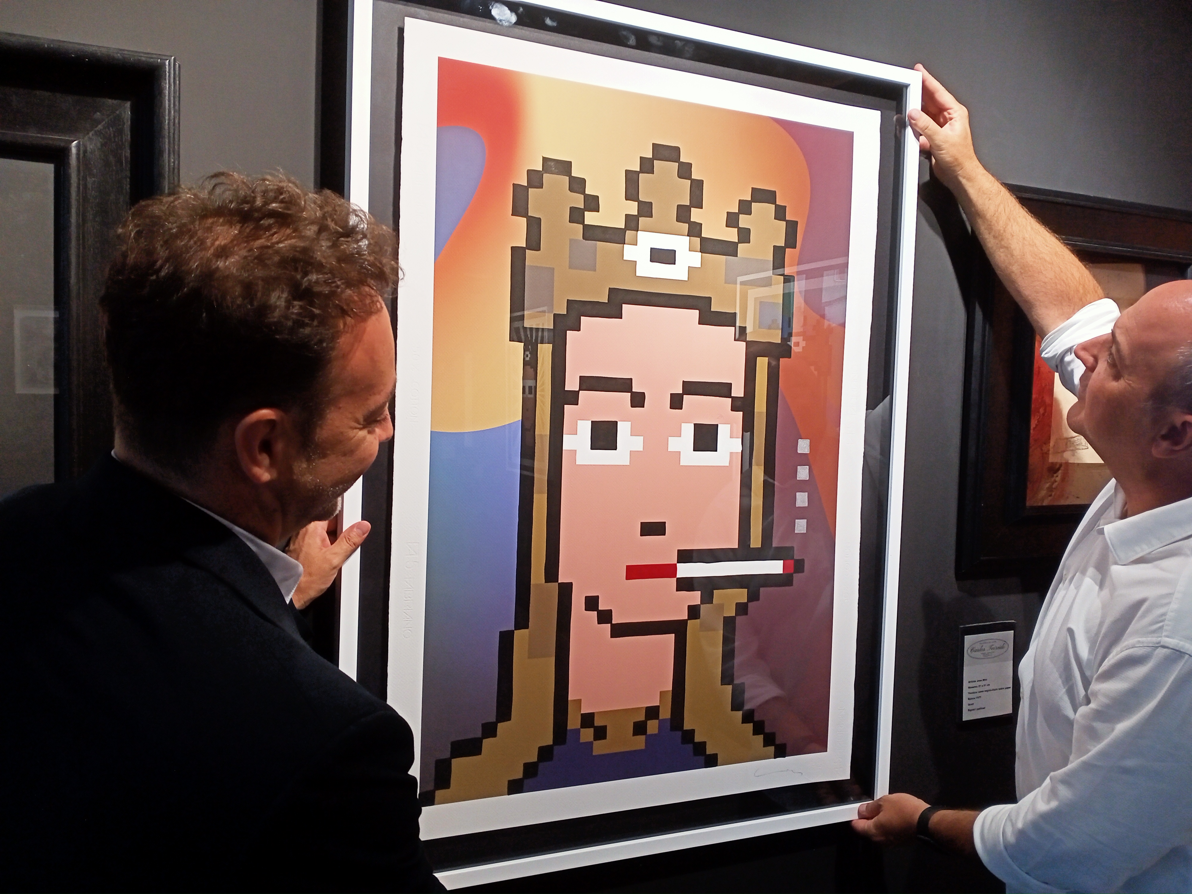 A més d’atrevir-se a jugar amb la verge, Moles ho ha fet amb un llenguatge a la vegada tradicional –acrílic, collage i pa d’or sobre paper– i contemporani, on en lloc de pinzellades el que hi ha són píxels. De moment és una sèrie de tres obres de format mitjà (85 per 115 centímetres) que ben aviat podria fer honor al seu nom i saltar al món del criptoart i dels Non Fungible Tokens (NFT), amb una sèrie digital que es comercialitzaria a través del blockchain. Però tot això ja es veurà, i més ara que el mercat dels NFT s’ha ensorrat de forma dramàtica, adverteix l’escaldenc. És clar que calia molt coratge i un molt bon raconet per embarcar-se en aquesta versió 2.0 dels duros a quatre pessetes que es van inventar els creadors dels NFT, però aquesta és una altra història.