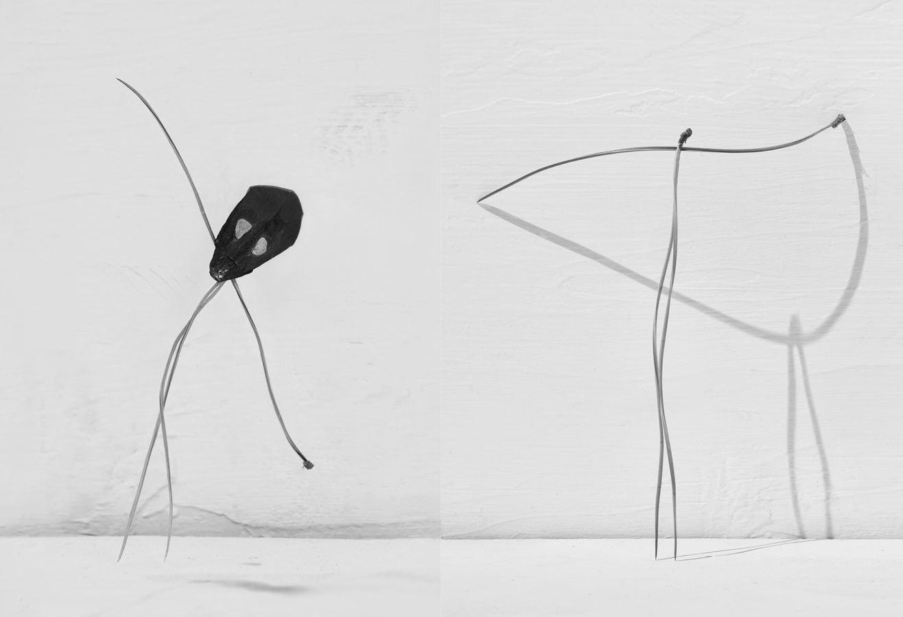Una exposició especial per dos motius, diu. El primer, perquè tot i que va començar la seva trajectòria com a fotoperiodista, Yeste és un dels grans noms de la fotografia de moda i publicitària d’ara mateix. Amb Needles s’allunya del glamur i de la hiperproducció de Vogue i companyia i s’estrena en la fotografia creativa o, diguem-ne, artística. I ho fa amb un objecte, una vocació i uns resultats als antípodes de les portades de les revistes de moda. Needles és gairebé arte povera. De fet, hi podem treure definitivament el gairebé. És arte povera, efímer i casual, que comença com un pur joc i que acaba convertit en un metadiscurs artístic. Facin l’exercici d’observar les estupendes fotografies d’aquí dalt: eren pinassa, Yeste les va convertir primer en minúscules escultures i després es va dedicar a fotografiar-les. El resultat és una altra cosa: per aquí, una ballarina, per allà, una cheer leader, més avall, una màscara africana, o dos amants enxampats en plena efervescència, una mantis, dos patinadors, un pubis femení o desenes d’espermatozoides lluitant per arribar els primers a la terra promesa.