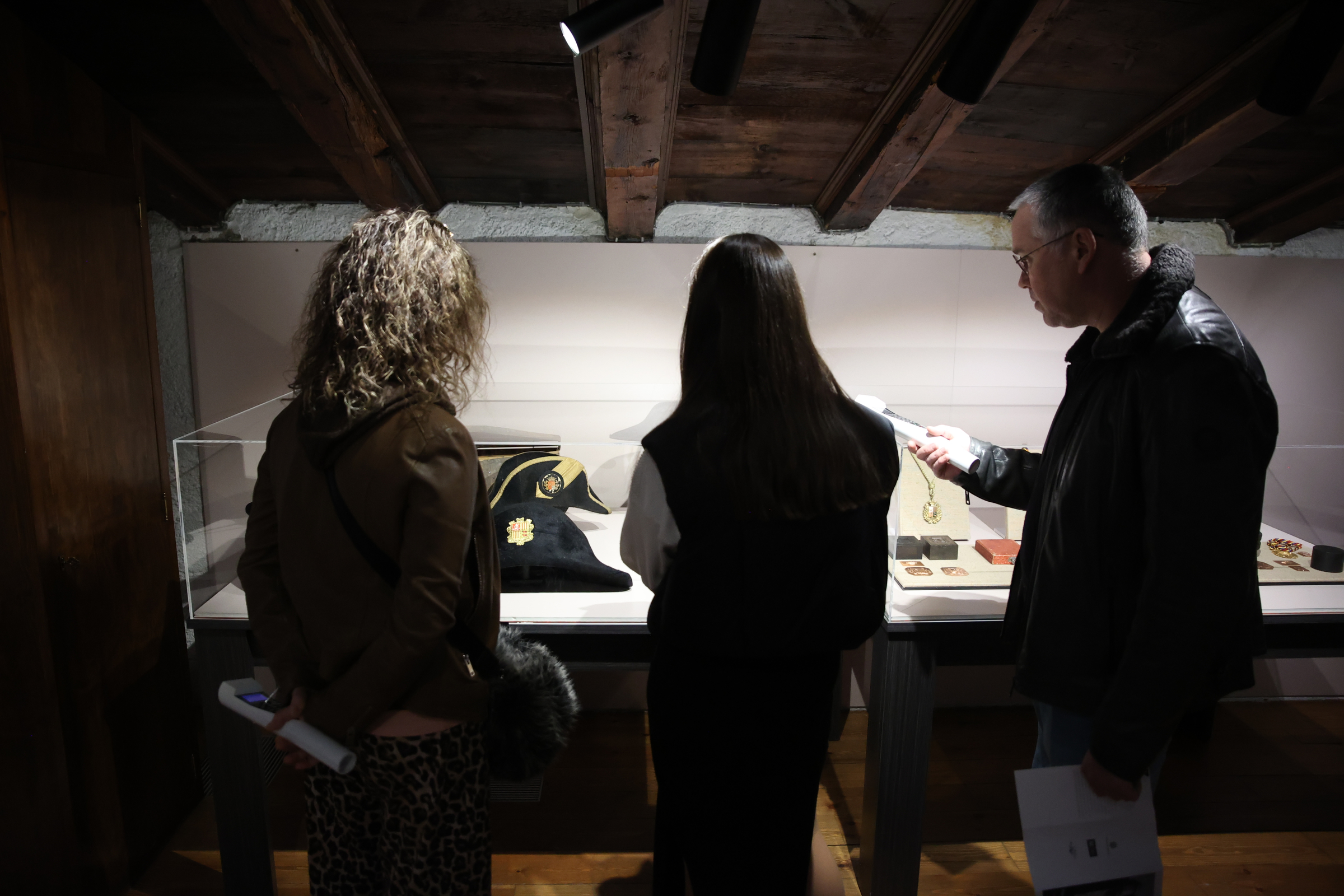 Més tresors: no es poden perdre la vitrina amb els bicorns, més que un complement, el signe que distingeix el síndic com a figura preeminent del Consell. El més antic data del segle XVIII i procedeix dels fons oceànics de Casa Rossell –potser el va tenir entre les mans Antoni Fiter i Rossell–, el més modern, el que Carles Ensenyat va utilitzar precisament ahir en la sessió tradicional del Consell. I entremig, last but not least, el de Francesc Cairat, el síndic providencial. Al costat dels bicorns aprofitin per fer un cop d’ull a les medalles d’autoritat, que exhibeixen en actes oficials els alts càrrecs institucionals –coprínceps, síndics, veguers i consellers generals–, instituïts el 1914 i que han tingut de moment cinc versions, amb l’escut d’Andorra invariablement a l’anvers, i al revers, la Mare de Déu de Meritxell i, des del 1994, la Constitució.