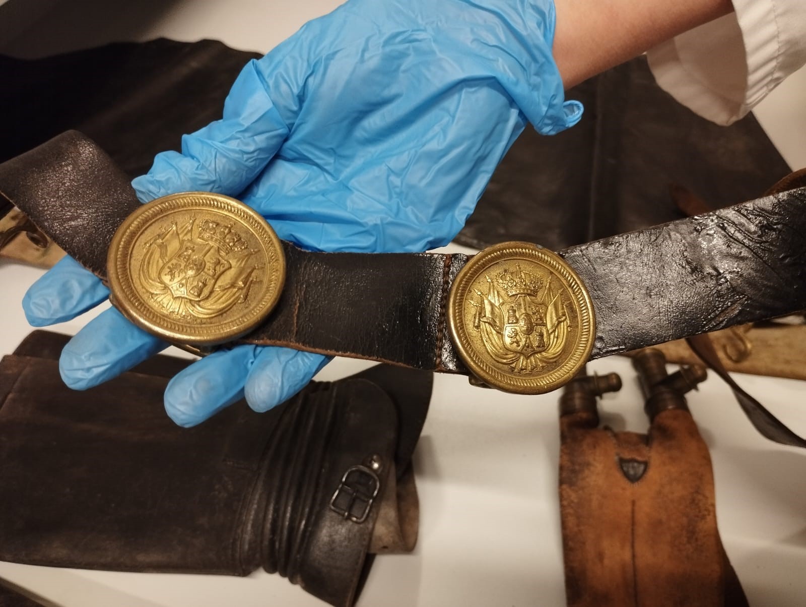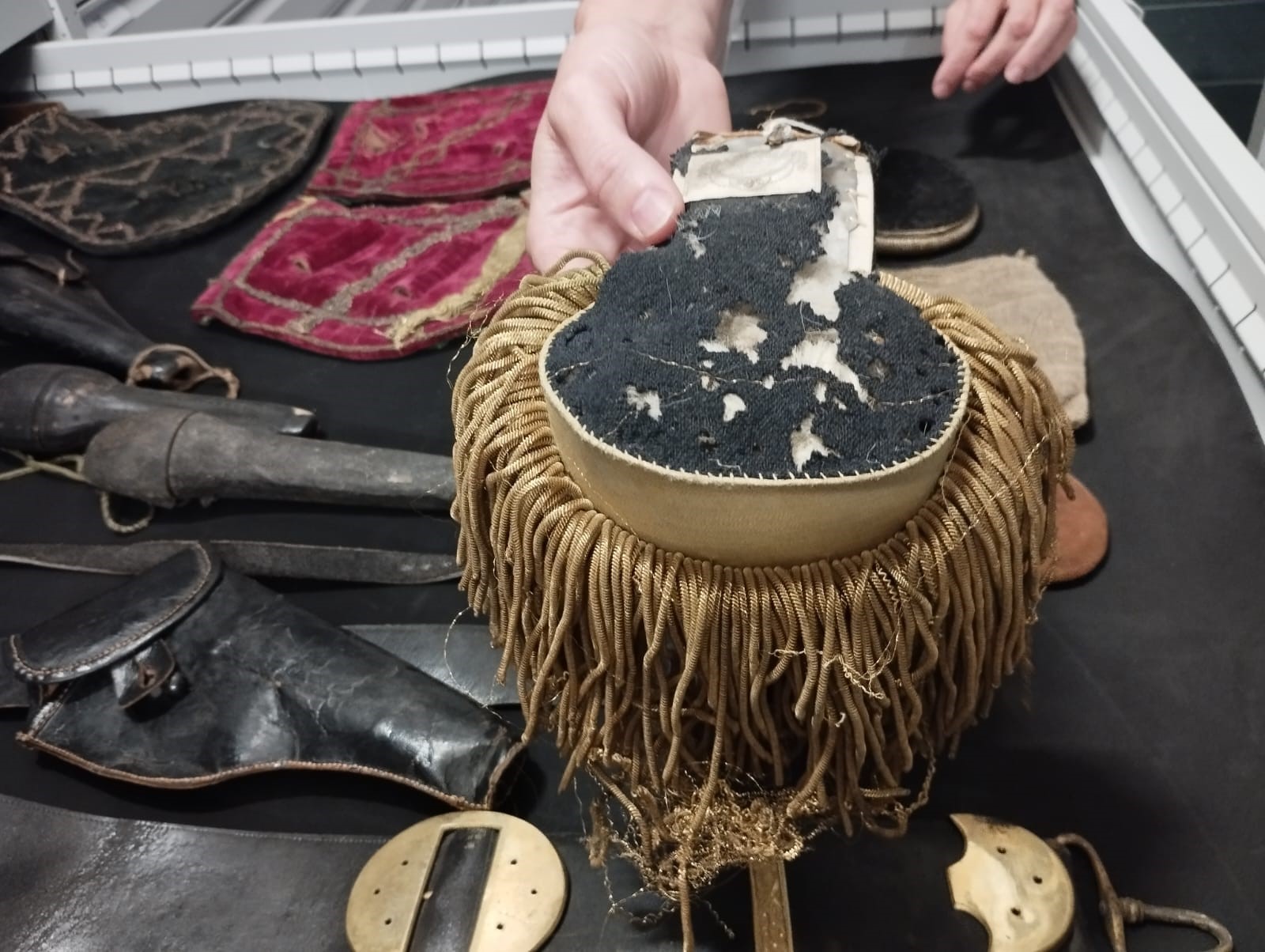 Per anar fent dentetes, aquí tenen aquests magnífics exemplars de pedrenyal (a dalt), una temible baioneta –imaginin el que devia ser fer front a un soldat que carrega a la baioneta calada– i els galons d’un oficial que conserven fins i tot el nom del fabricant (José Carreras Cordonero, amb botiga oberta al número 5 del carrer Escudellers de Barcelona). Hi ha també dagues, polaines, fundes de pistola, bales, pantalons, portamantes, cartutxos, cinturons, metralla i fins i tot dues boines vermelles i inequívocament carlines a punt de desintegrar-se. Per no parlar de les armes llargues, que es conserven a Aixovall i que encara no han pogut pujar al Rosaleda. És una llàstima que aquest tresor que fa olor de pólvora, carlí i trabuc no hagi sortit mai del dipòsit.