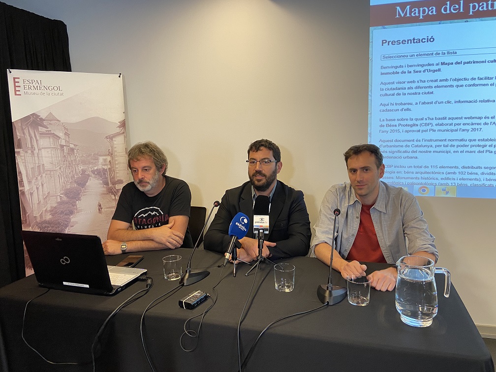 De l'enjardinament del claustre de Santa Maria al turó de Castellciutat, el nou Geoportal de Patrimoni posat en marxa per l'Ajuntament –i ja operatiu– posa a l'abast de la mà els 115 béns del patrimoni immoble catalogats (interès local i nacional) a la Seu d'Urgell. Una eina per a la ciutadania i per als tècnics, d'arqueòlegs i historiadors a urbanistes, també per als propietaris d'immobles i els mateixos gestors municipals, destacava l'artífex del portal, el també arqueòleg Òscar Augé, que el presentava acompanyat de l'alcalde i el regidor de Cultura en funcions, Francesc Viaplana i Carlos Guàrdia. Ho feien a l'Espai Ermengol: el geoportal, a banda de a l'adreça http://geoportalpatrimoni.laseu.cat/, serà accessible des del web del museu i també des del de l'Ajuntament. Una "eina viva, útil, dinàmica", destacava Augé. Amb un mapa interactiu per situar-se i informació (de moment, bàsica, s'ha d'ampliar) sobre cadascun dels béns; per exemple, amb més informació històrica i més dades descriptives de cadascun. Sí incorpora ja aspectes com informació cadastral. L'eina respon, puntualitzava Guàrdia, a complir amb el compromís amb la difusió del patrimoni.