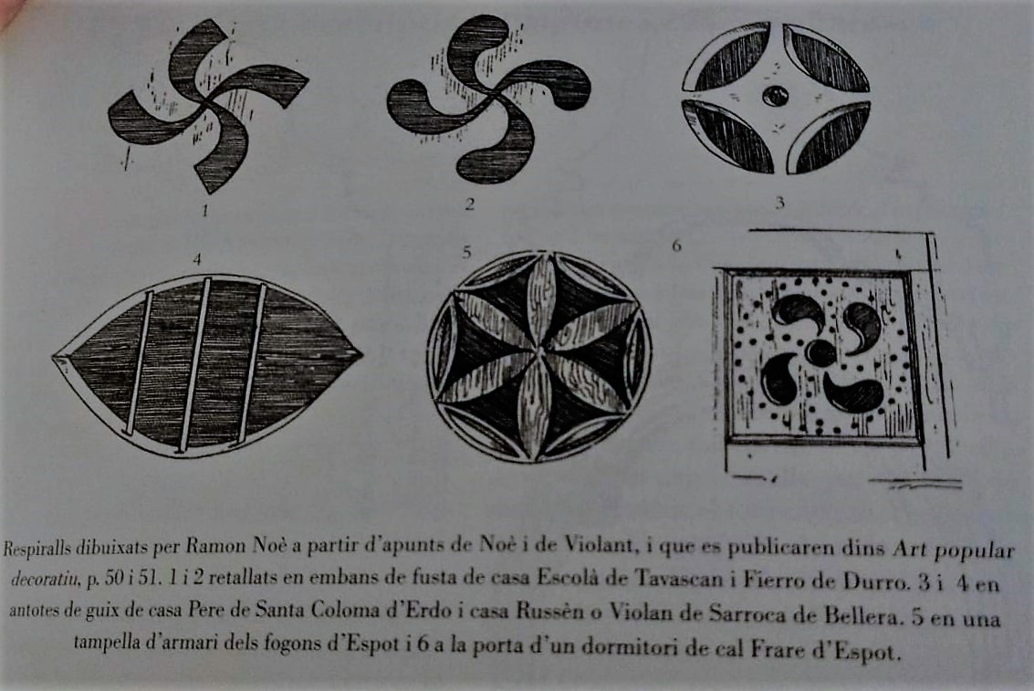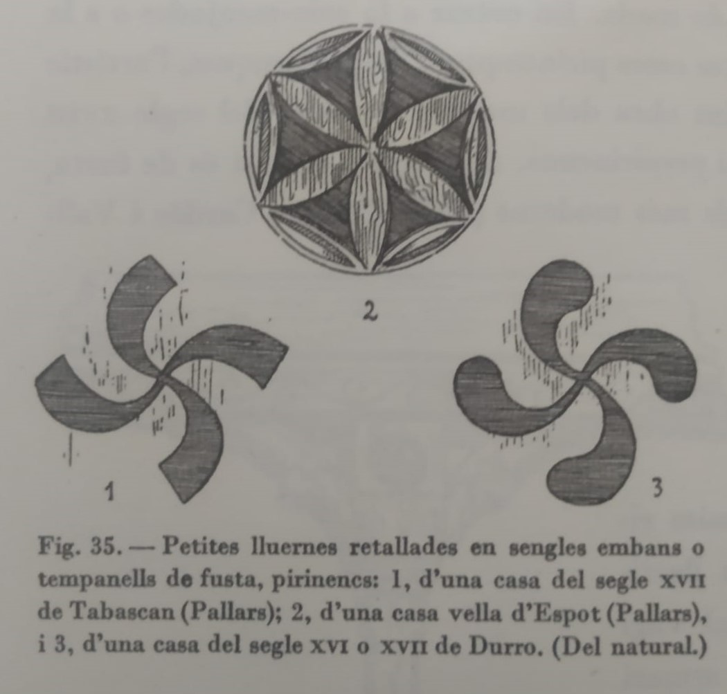 Atenció, però, que ni l’esvàstica la van inventar els nazis ni el lauburu se’l va treure de la màniga Sabino Arana. Tots dos són símbols ancestrals d’origen probablement indoeuropeu, diu Casamajor, que es van estendre pel nord d’Europa i pels pobles celtes, i que tenen una clara vocació religiosa: l’esvàstica no deixa de ser el disc solar, el sol que dona voltes i que insufla vida. De fet, al Pirineu català, i també a l’andorrà, ja tenim un símbol equivalent i molt més utilitzat, la roseta sexifòlia o de sis pètals, que es gravava a portes i finestres, així com als collars del bestiar i als salers de pastor –només cal que recordin els de Sergi Mas– amb una intencionalitat molt clara: protegir contra els mals esperits l’espai domèstic i els ramats. A casa Guillemó no hauria sigut cap sorpresa trobar-hi una sexifòlia, però hi ha aparegut un lauburu. Per què?
