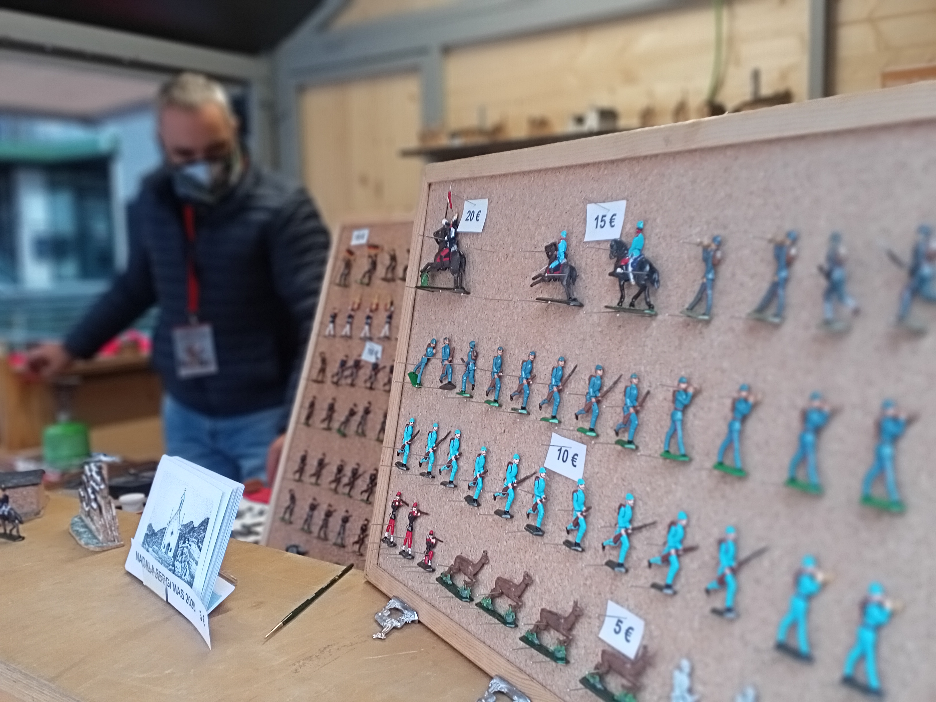 L’historiador i maquetista David Mas fon en viu a la parada del mercat de Santa Llúcia lauredià soldadets de plom vintage. Els motlles són rèpliques dels originals de la casa Schneider de principis del XX i el resultat són uns quants batallons de ‘poilus’, ‘boches’ i també d’hússars de la guerra francoprussiana.