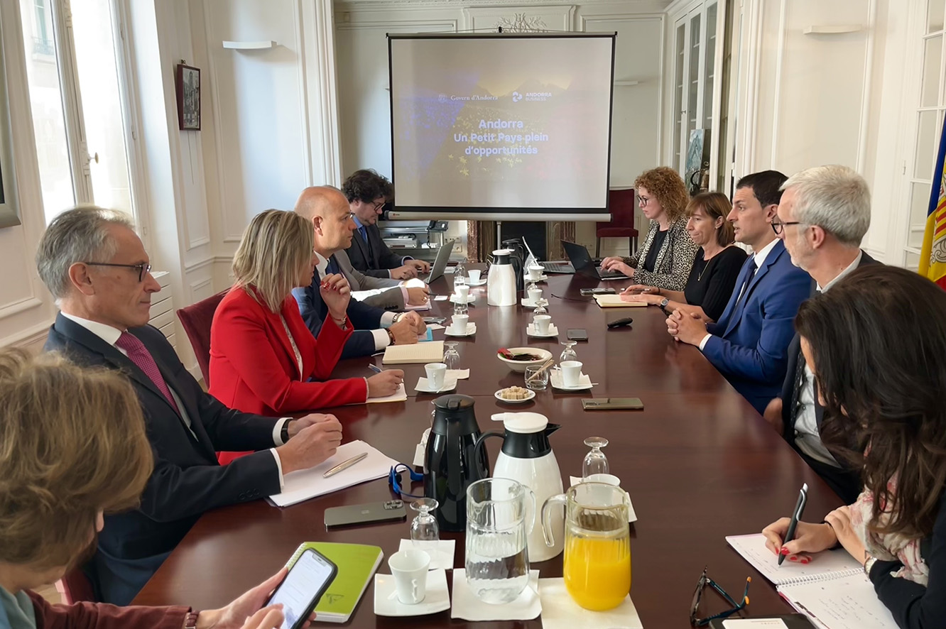 La delegació andorrana a París la completaven el secretari d’Estat d’Economia, Eric Bartolomé, i l’ambaixadora d’Andorra a França, Eva Descarrega.