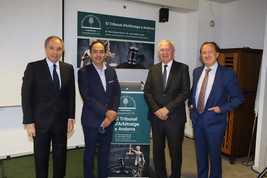 El president del Tribunal d’Arbitratge del Principat d’Andorra (TAPA), Pierre Raoul-Duval, i el secretari general d'aquest organisme, Juan Pablo Correa, han explicat avui els avanatatges que pot oferir el TAPA en la solució de confictes respecte la justícia ordinària, en l'acte organitzat per l'Empresa Familiar Andorrana (EFA), on han explicat que només un 5% de les decisions d'aquests organismes són revocades posteriorment pels tribunals ordinaris.