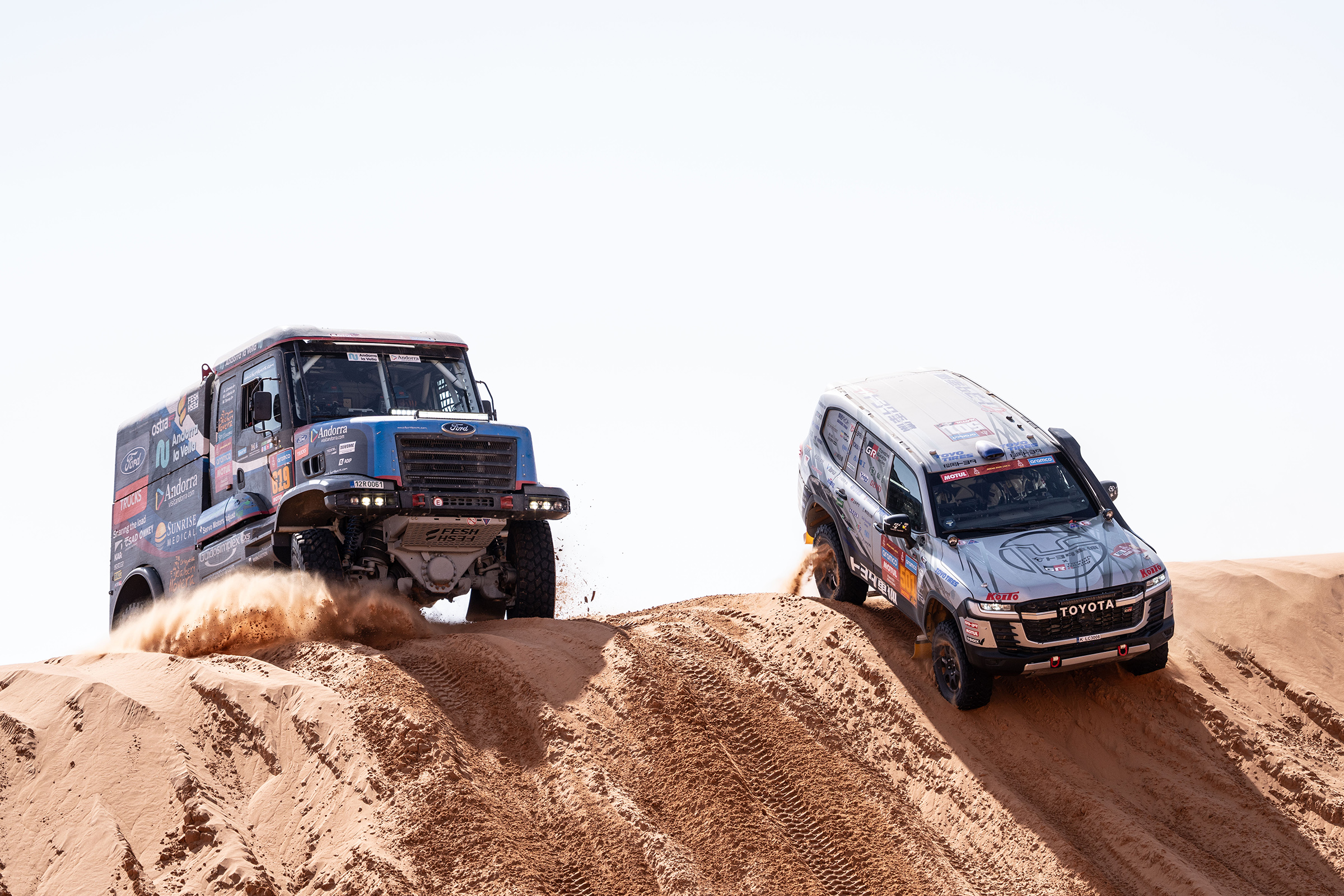 Novena etapa superada. Albert Llovera, amb la seva neboda Margot com a copilot, van assolir la 17a posició i ocupen el 18è lloc de la general de camions al Ral·li Dakar. “La segona part de l’especial, de paisatge espectacular, però per anar amb camió i competint molt complicada. Una zona trialera, amb sorra molt tova i sense manòmetre ha estat difícil. El 2020 ja havíem passat per aquí i les pistes estaven molt trencades. El meu físic segueix aguantant”, va dir Albert Llovera.