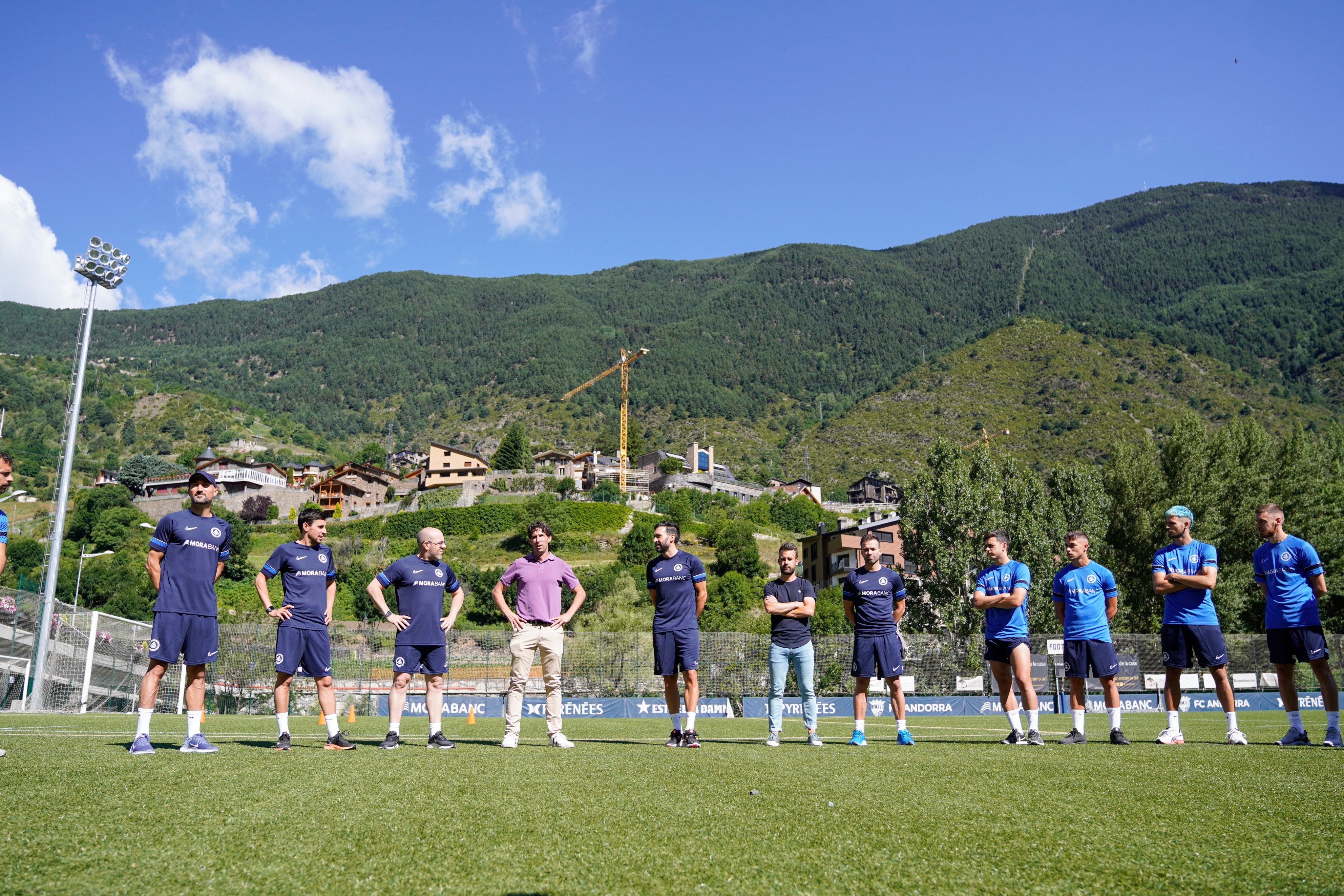 Sense encara casa pròpia, però amb escut nou, va començar ahir la pretemporada de l’FC Andorra amb les revisions mèdiques i també alguna xerrada sobre el terreny de joc de Prada de Moles d’Encamp, que deixarà de ser la seu del club tricolor. El club té previst marxar a fer una estada i segons ha pogut saber el Diari Bondia la realitzarà a la Nucia (València). Els d’Eder Sarabia es van quedar ahir sense l’extrem i també lateral Pau Martínez ja que va ser traspassat a l’Osasuna Promeses. Qui està lliure és el davanter Rubén Enri, que va rescindir amb l’Almeria.