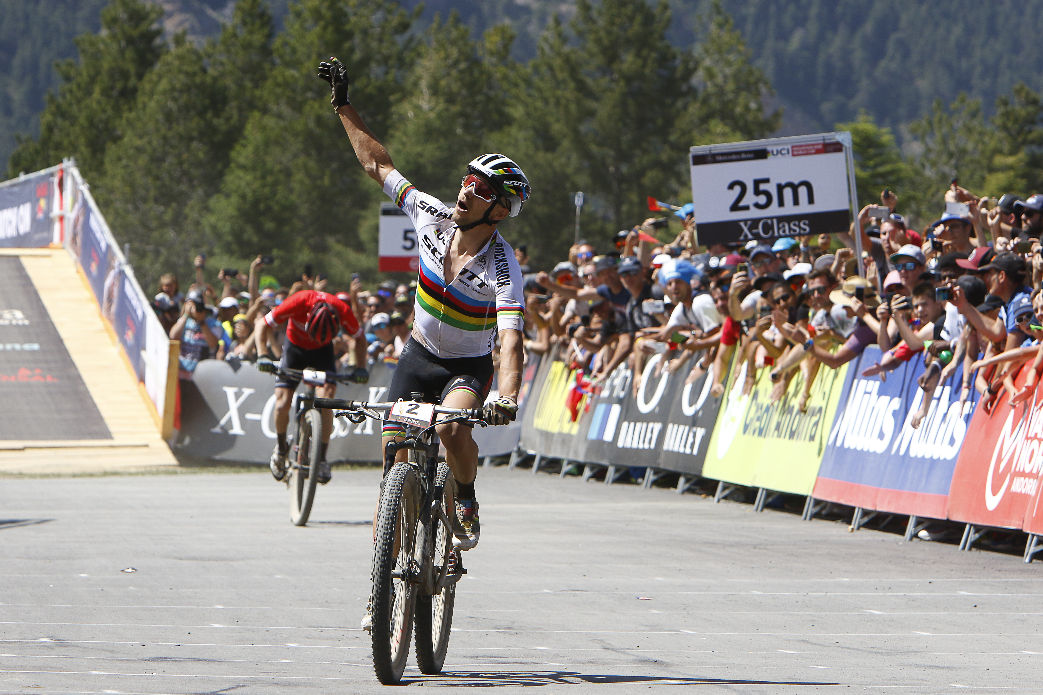 El vigent campió del món, el suís Nino Schurter, va patir moltíssim –amb caiguda inclosa al principi– per aconseguir la victòria. Va demostrar moltíssima força de voluntat i al final va superar el seu compatriota Mathias Flückiger. El brasiler Henrique Avancini va tancar el podi de la prova de cross-country masculina amb un ambient espectacular a Vallnord Pal Arinsal. “Ha estat una bona victòria perquè ha estat molt i molt dur”, va assegurar Nino Schurter, que un cop va creuar la meta es va deixar caure a terra totalment exhaust. Per la seva banda, Guy Díaz no va completar la prova, i en sub-23 Kilian Folguera tampoc la va poder completar.