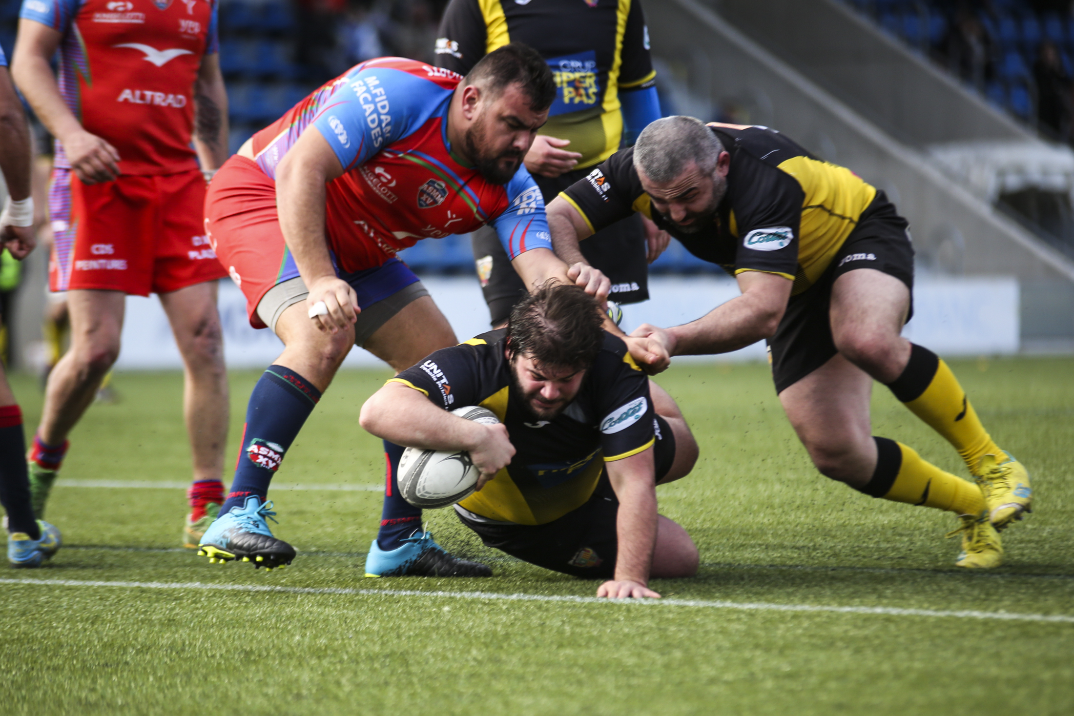 Els de Jonathan Xepi García i David Kirikaixvili, que estaven fosos després de jugar amb el segon equip en un partit que va acabar amb una forta picabaralla, els va costar dominar un rival extremadament dur. Dos cops de càstig transformats pel georgià Ramas Jinashvili van situar el 6 a 0. Tot seguit, els francesos van escurçar diferències amb un cop de càstig (6 a 3). Abans del descans, assaig d’Edisher Jamrulidze transformat per Jinashvili (13 a 3). Abans del descans, assaig dels francesos no transformat per deixar el 13 a 8, però amb un jugador menys ja el Maureilhan en rebre la primera vermella.