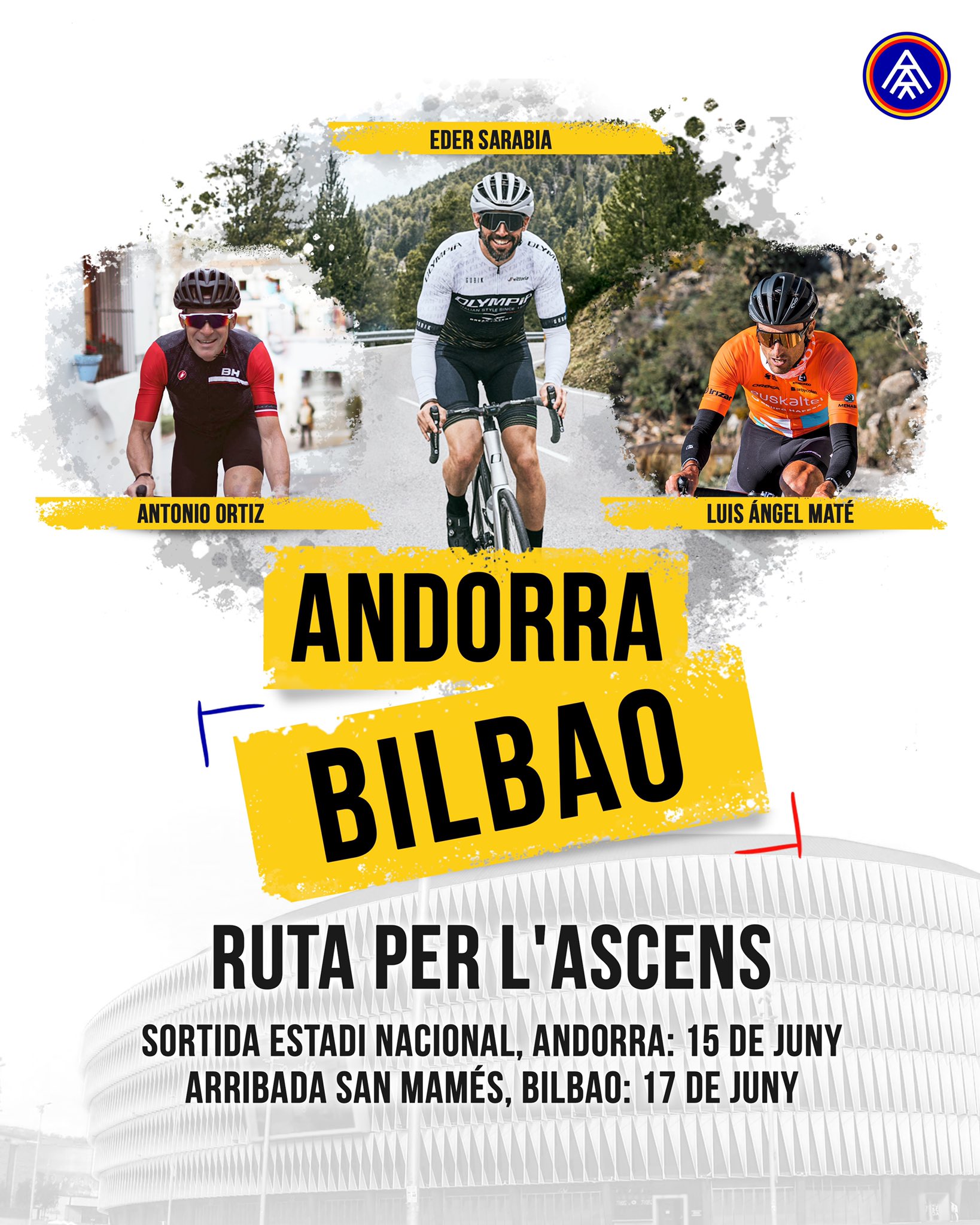 “Hi ha qui es tenyeix o es rapa el cabell, però un basc de veritat compleix les seves promeses més serioses. Andorra-Bilbao en tres dies en bicicleta”. Així mateix va anunciar Eder Sarabia, el tècnic de l’FC Andorra, la seva nova aventura després d’assolir l’ascens a la Lliga SmartBank. L’entrenador basc, fill del mític exdavanter de l’Athletic Bilbao Manu Sarabia, sortirà demà des de l’Estadi Nacional acompanyat del biker andalús d’Ojén, Antonio Ortiz i també del ciclista professional de l’equip Euskaltel-Euskadi, Luis Ángel Maté. També l’acompanyarà el seu cunyat, Marc Bernaus. Els tres tenen previst arribar divendres a San Mamés, l’estadi de l’Athletic de Bilbao. Per tant, un total de 550 quilòmetres rodant per les carreteres del nord i tot per fer bona una promesa d’ascens ben peculiar.